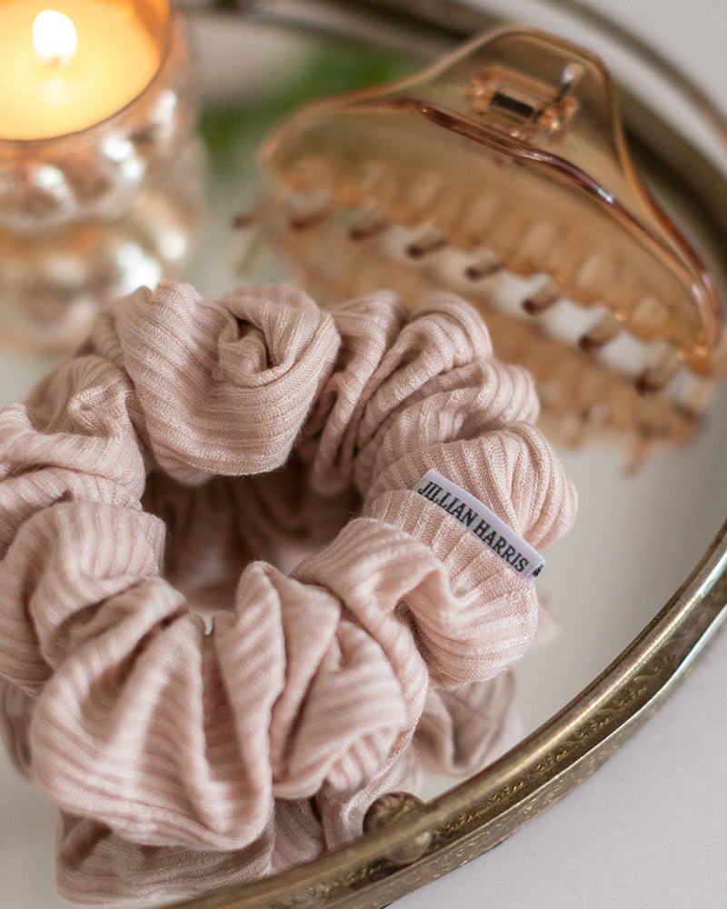 Crazy hair day? No problem. Our team swears by the messy bun look, whether you rock it first thing in the morning or all day long! This hairstyle looks even more adorable with a scrunchie from our Josefina + Co. Handmade Scrunchie Duo! Josefina + Co offers a collection of stylish, comfortable, high-quality hair scrunchies and accessories. This adorable Dainty Floral and Teal Check scrunchie bundle was chosen by Jillian and Team Jilly Box and was handmade right here in Kelowna, BC!
