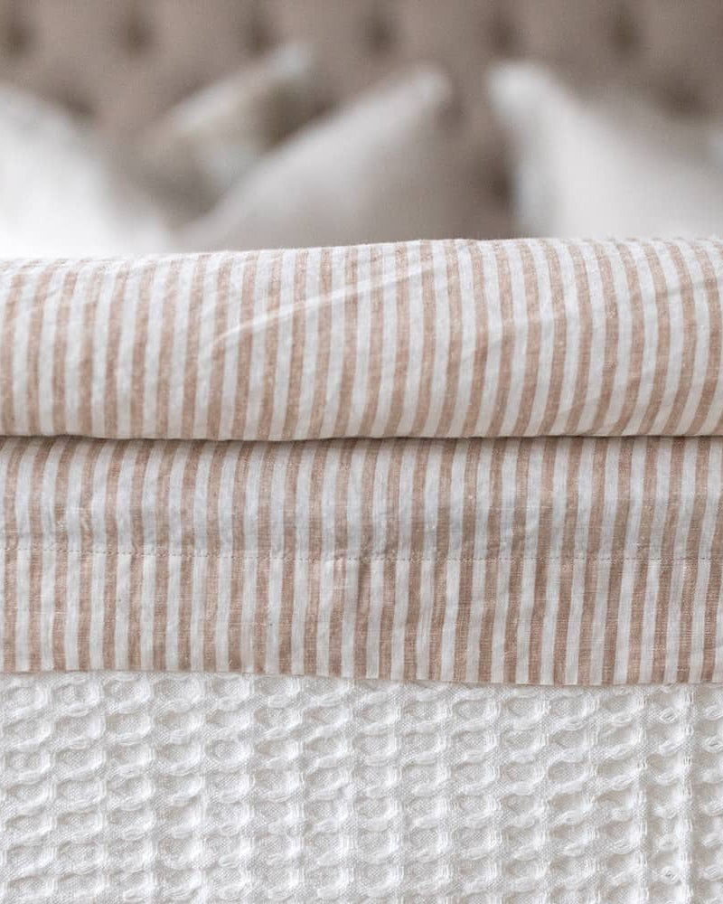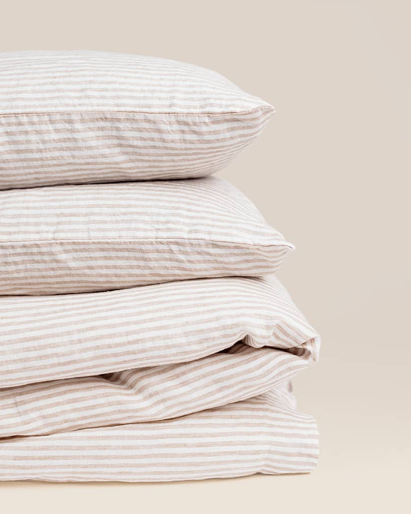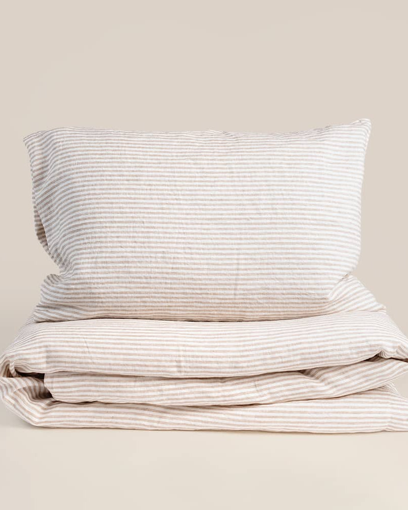Made from 100% European stonewashed flax linen, these airy euro shams bring effortless style and comfort to your bedroom. The striped pattern blends seamlessly with the Wilet Duvet Set, the Tuck Quilt, or any decor. Ethically made, OEKO-TEX® certified, and designed in Vancouver, they’re the perfect finishing touch for a cozy, polished bed. Inserts not included.