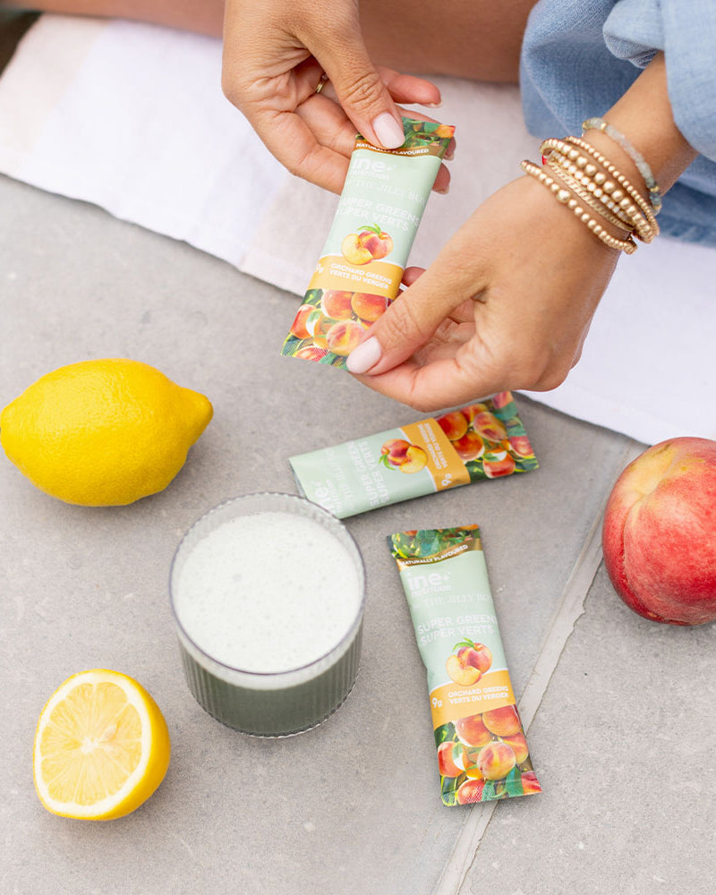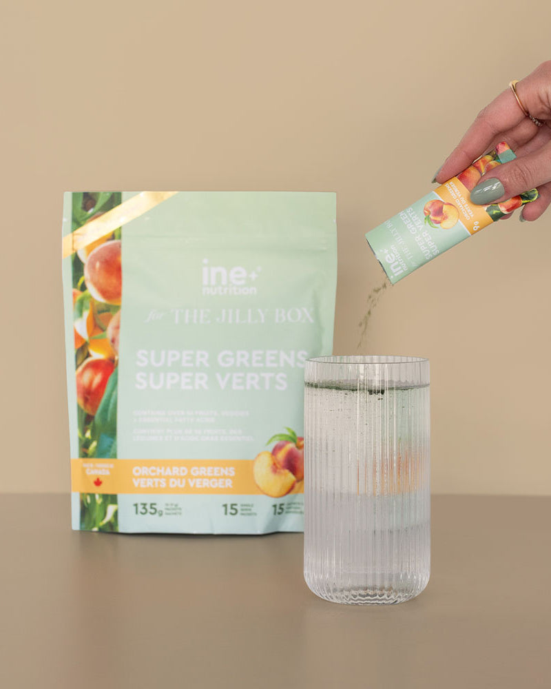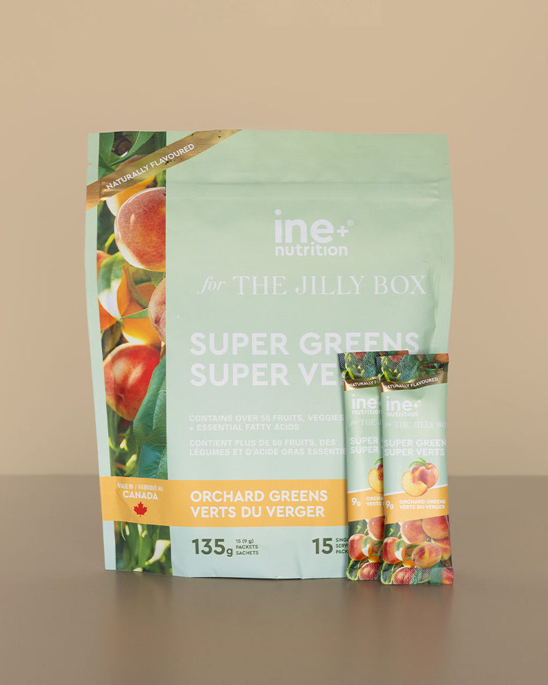 Have you heard of this greens powder that is Jillian's new morning go-to?! Introduce Super Greens Powder from ine+ nutrition! This is a CUSTOM ‘Orchard Peach’ flavour that our team is obsessed with. The powder is intended to improve gut health, better-focused energy, alertness, vitality, mental clarity and support for brain health. Who doesn't want more of that?! Simply scoop (10 g) and dissolve in a 250 ml glass of water or smoothie, and enjoy!
