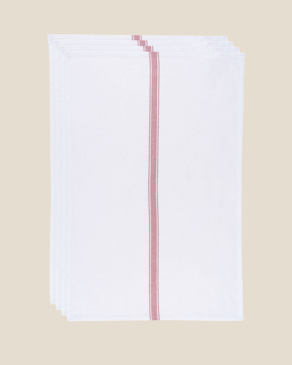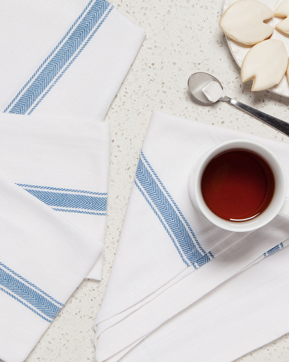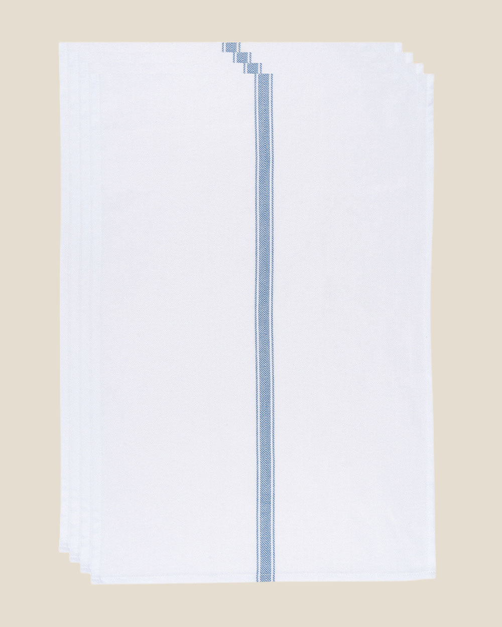 This set of four extra-soft 100% cotton kitchen towels is the perfect choice for style-conscious home cooks. The understated design is inspired by the classic good looks of traditional herringbone weave. These kitchen towels are both durable and versatile, making quick work of drying pots and pans or gracing a casual table setting as an oversized napkin.