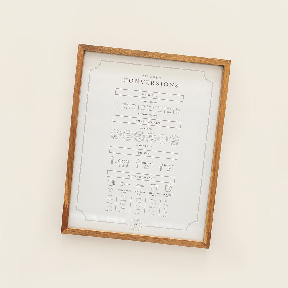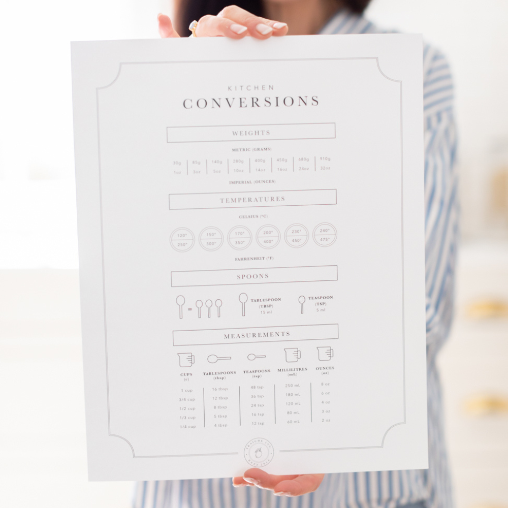 An easy-to-use tool to add charm and functionality to your kitchen. This measurement chart will empower your whole family to get cooking! Designed with love by Team Fraiche in collaboration with The Jilly Box, this will be a staple decor piece in your kitchen for years to come!