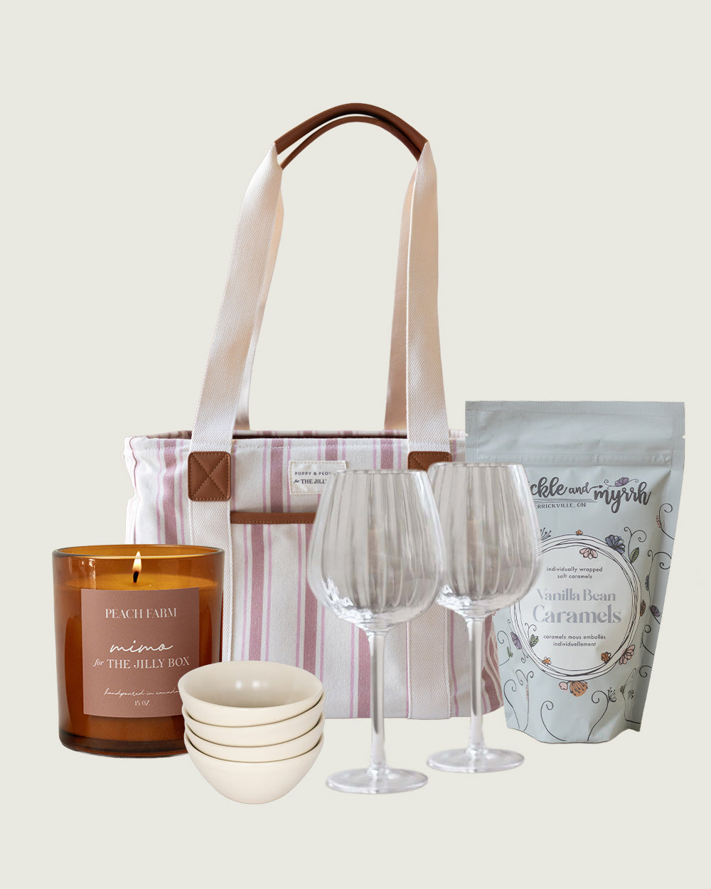 Be the host with the most (style) this holiday season. Set an elegant table with The Little Bowls from Fable, perfect for olives, nuts, preserves or your signature amuse-bouche. Fill The Cross Sparkle Red Wine Glasses with cheer, catching the soft light of the Mimo Peach Farm Candle. And because the best hosts know to throw a sweet finale, this set includes the all-time favourite Pickle & Myrr Caramels. Take your hosting secrets anywhere you go with the stylish Poppy & Peonies Mini Traveler Tote Bag.