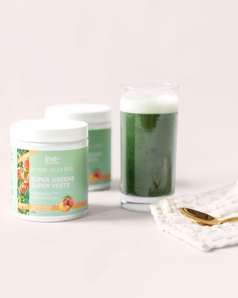 Have you heard of this greens powder that is Jillian's new morning go-to?! Introduce Super Greens Powder from ine+ nutrition! This is a CUSTOM ‘Orchard Peach’ flavour that our team is obsessed with. The powder is intended to improve gut health, better-focused energy, alertness, vitality, mental clarity and support for brain health. Who doesn't want more of that?! Simply scoop (10 g) and dissolve in a 250 ml glass of water or smoothie, and enjoy!