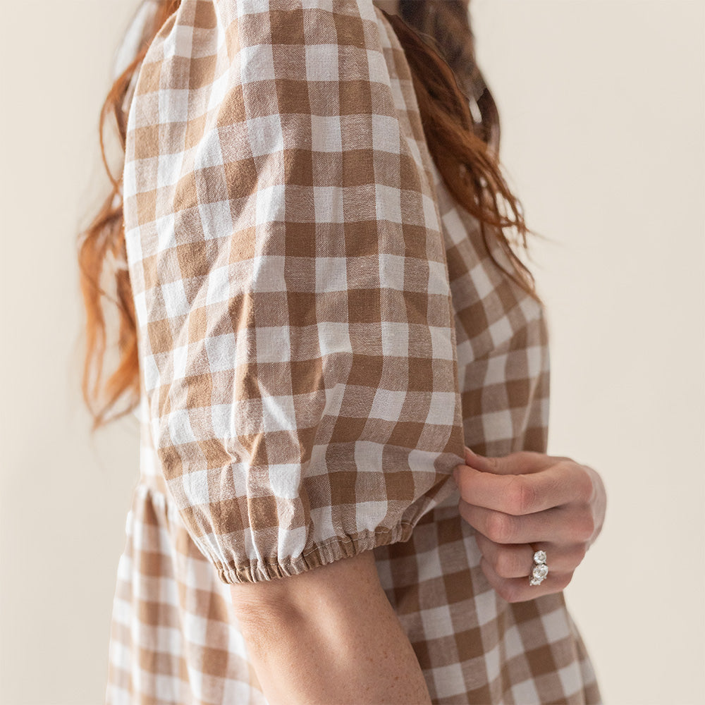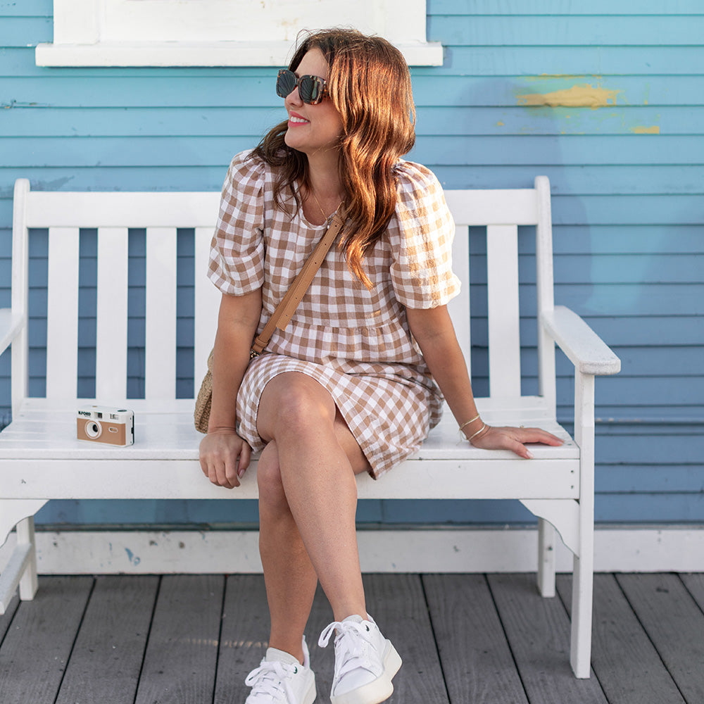 You know Jillian loves a flattering baby doll-style dress to wear in the summer, and this custom dress takes that style to a whole new level! The North Kinder Jilly Dress is handmade right here in Canada with premium hemp & organic cotton. We adore the brown and cream gingham print with cream-coloured lining. It’s so simple and so beautiful! You’ll find yourself reaching for it over and over again.
