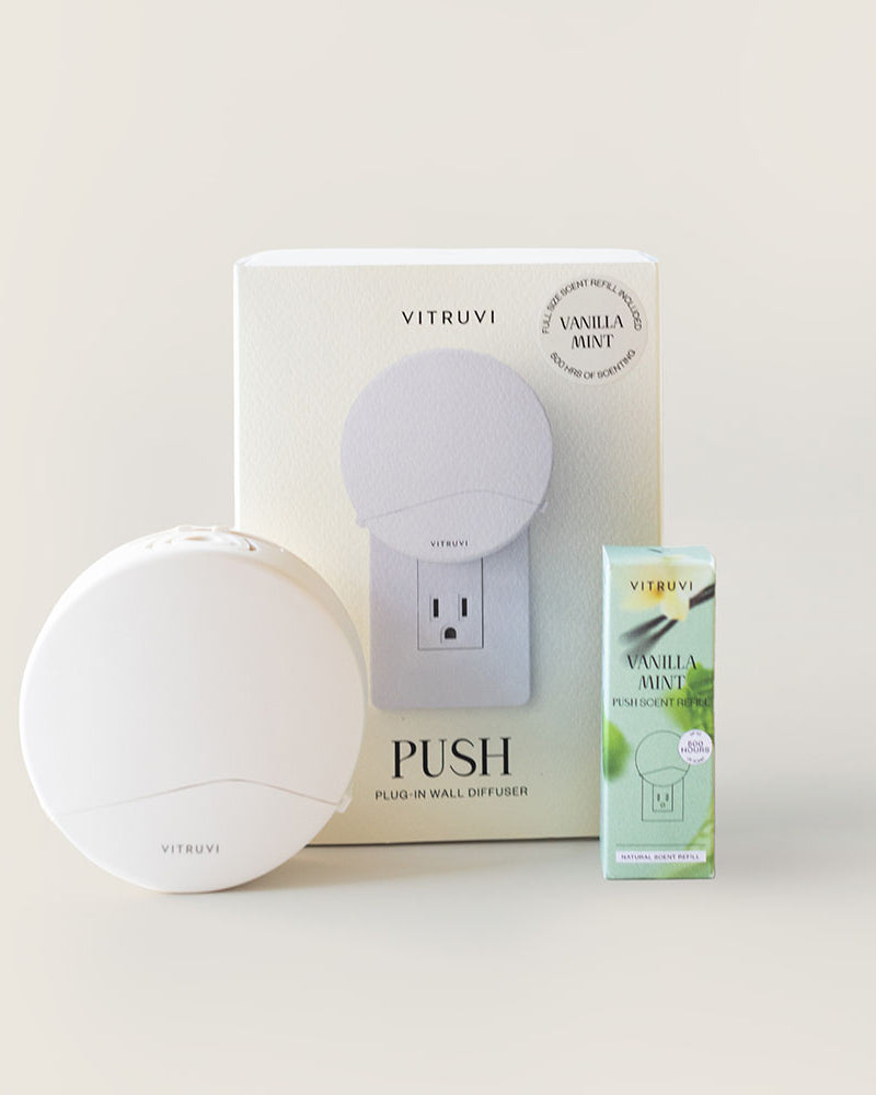 Crafted with 100% essential oils, these clean, non-toxic refills keep your Vitruvi Push Diffuser going strong. Choose from Vanilla Mint, Chai Spice, juicy Sweet Cherry, or grounding Forest Rain, each blend transforms your home, naturally.