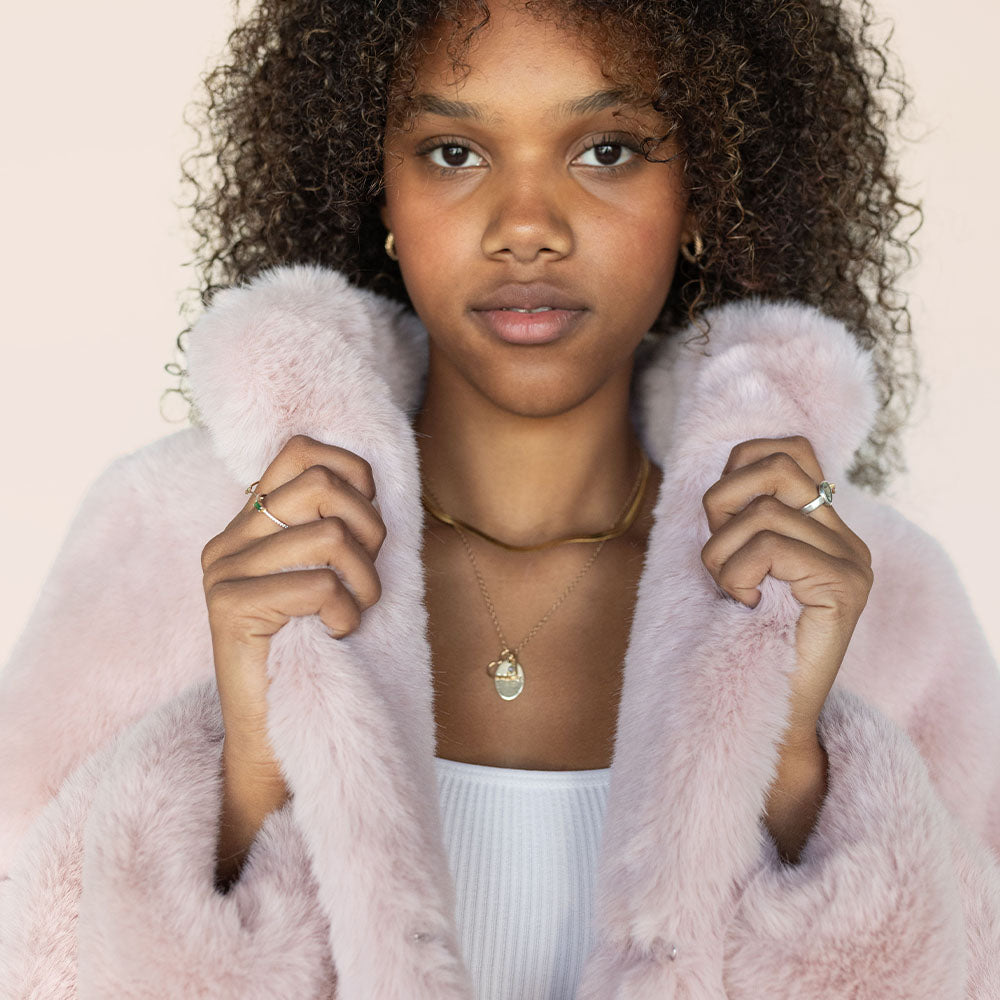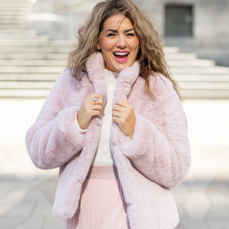 Many of you know Jillian is known to roll up to school drop off in a show stopping magenta pink coat, which sparked the idea of our team collaborating with that brand on a faux fur jacket for this Jilly Box community! A bit over-the-top for 8 am in the morning, but we just love it.