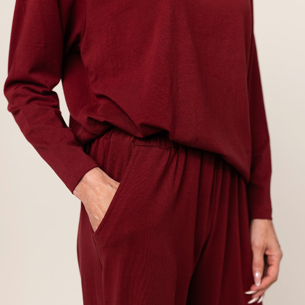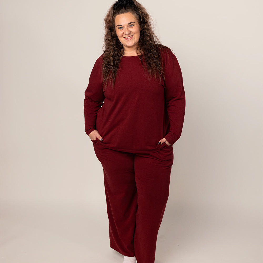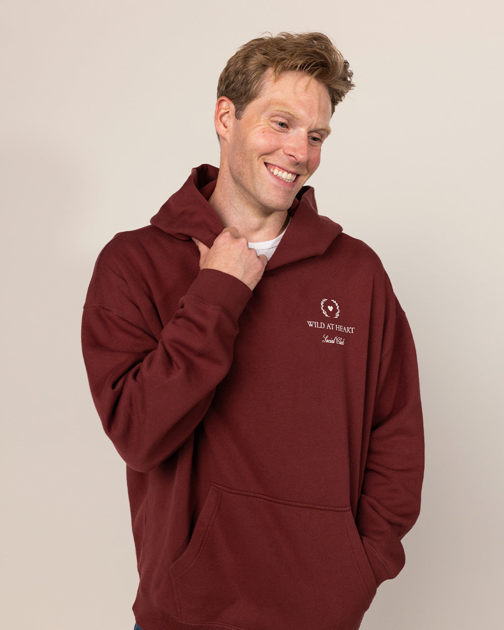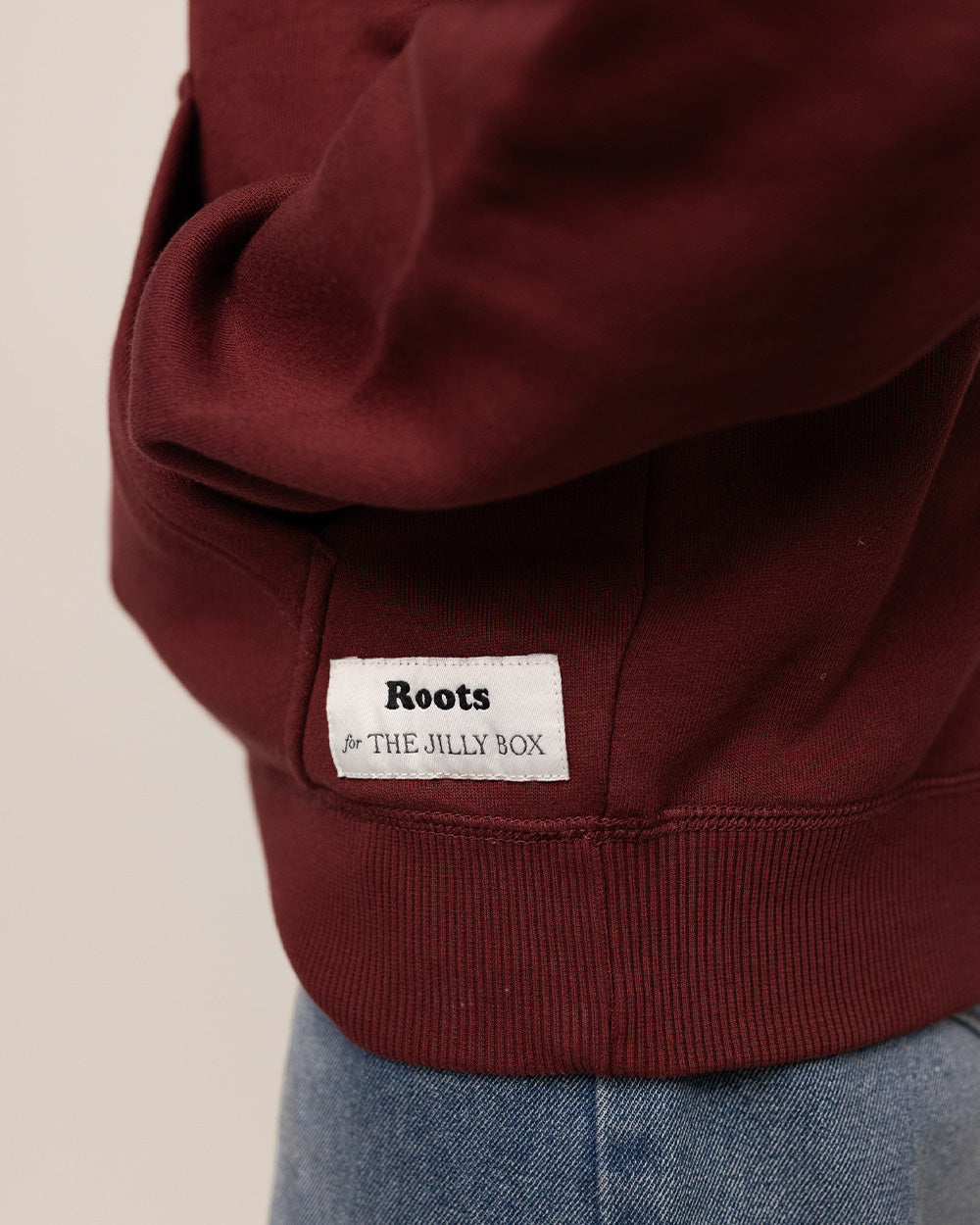 This exclusive Roots collaboration brings you the classic Kanga Hoodie in a custom Jilly Box design and gorgeous merlot colourway. Made with ultra-soft fleece from organic cotton and recycled polyester, it’s cozy, durable, and designed with a relaxed, gender-neutral fit for everyone.