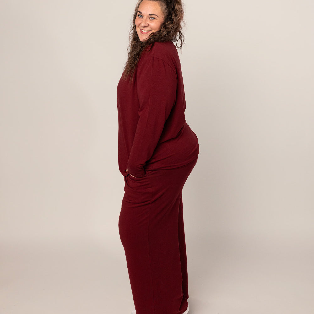 This collaboration is a dream come true! I still have my first Roots hoodie from 20+ years ago, and now we’ve made our own. I love the Merlot shade, the design we created, the cozy fleece, and that it’s made to be worn and loved by everyone.