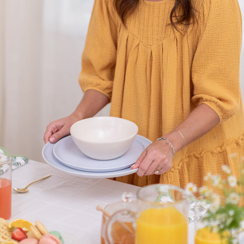 Ready to expand your dinnerware set?! Beloved brand Fable is BACK! This brand is known for creating sustainably crafted artisan homeware. Their collections are responsibly designed in Vancouver, BC, and sustainably crafted by skilled artisans in Portugal, Japan, Germany, and Italy. They are even a proud Certified B Corporation! Included as an add-on is The Base Dinnerware Set. This is a 16-piece dinnerware set, which includes 4 dinner plates, 4 salad plates, 4 pasta bowls, 4 breakfast bowls! They come in two custom colours, Linen Cream and Lavender Blue that MATCH the Fable mugs from the Spring 2023 Jilly Box!! This is your opportunity to expand your Fable collection!