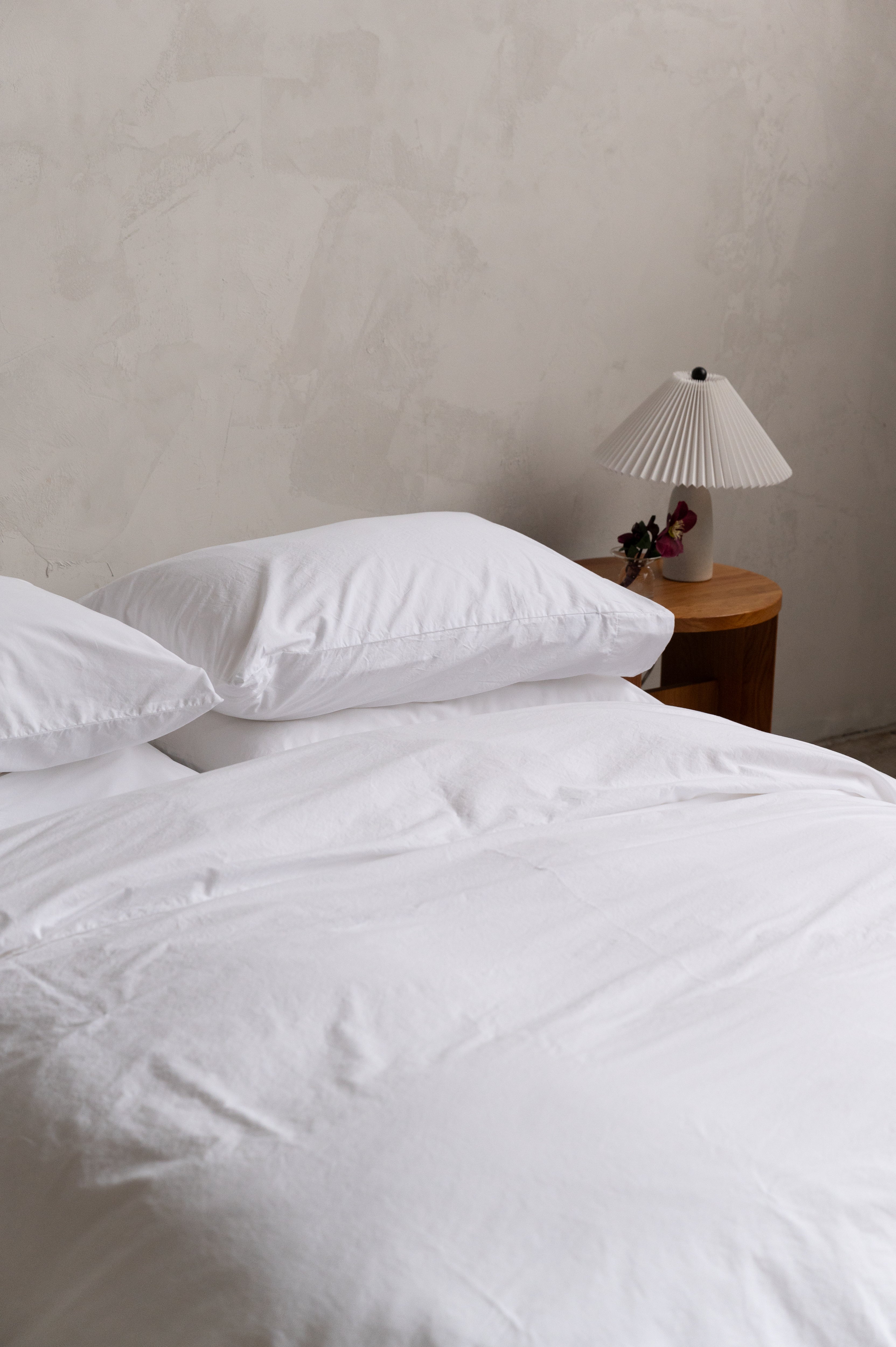 Woven in partnership with a family-owned mill in Portugal, The Crisp Sheet Set is crafted from a blend of sustainably sourced Egyptian Cotton and TENCEL™ Lyocell.  Designed with Tuck's signature percale weave and a smooth matte finish, these sheets are light, airy and effortlessly breathable.