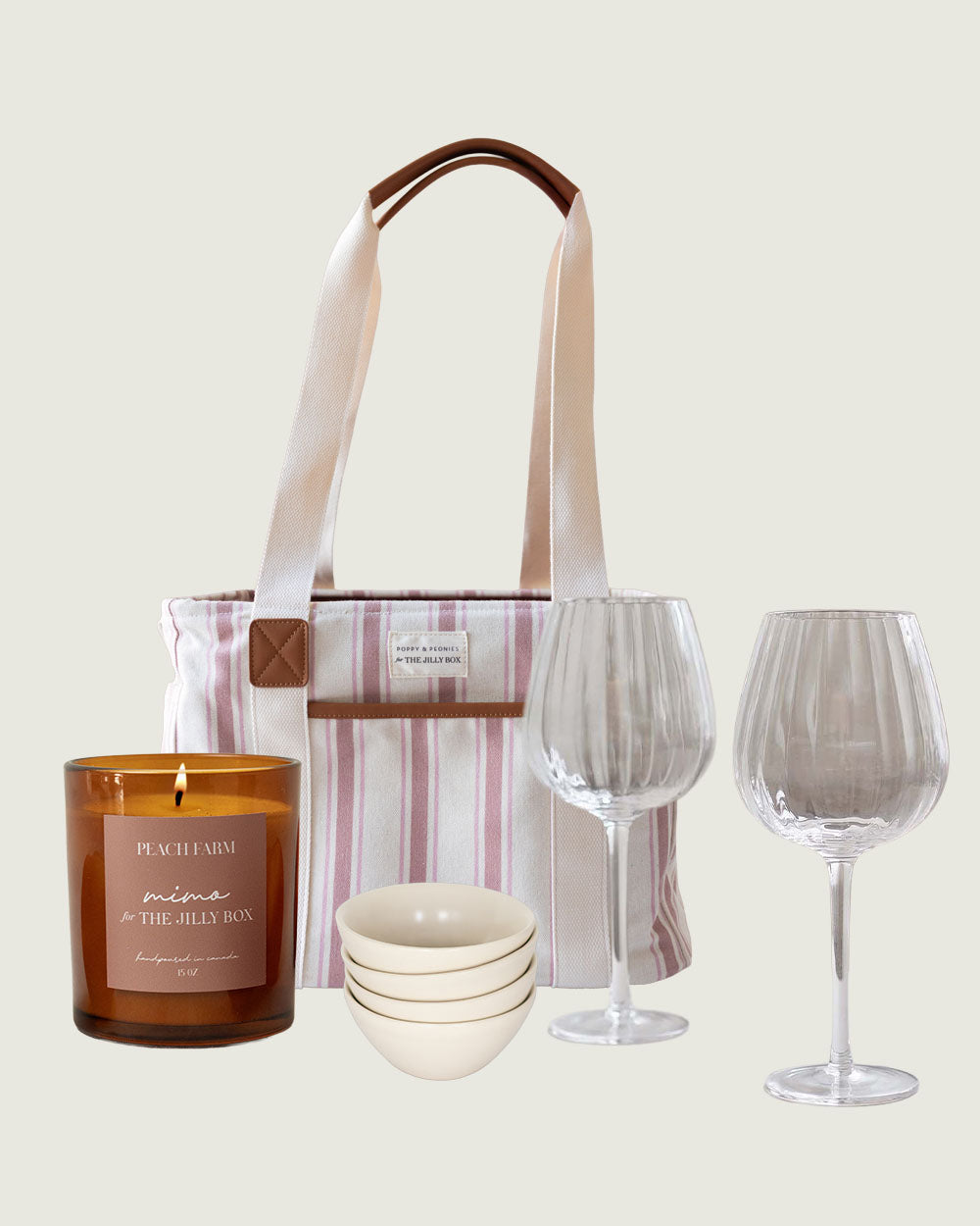 Be the host with the most (style) this holiday season. Set an elegant table with The Little Bowls from Fable, perfect for olives, nuts, preserves or your signature amuse-bouche. Fill The Cross Sparkle Red Wine Glasses with cheer, catching the soft light of the Mimo Peach Farm Candle. And because the best hosts know to throw a sweet finale, this set includes the all-time favourite Pickle & Myrr Caramels. Take your hosting secrets anywhere you go with the stylish Poppy & Peonies Mini Traveler Tote Bag.