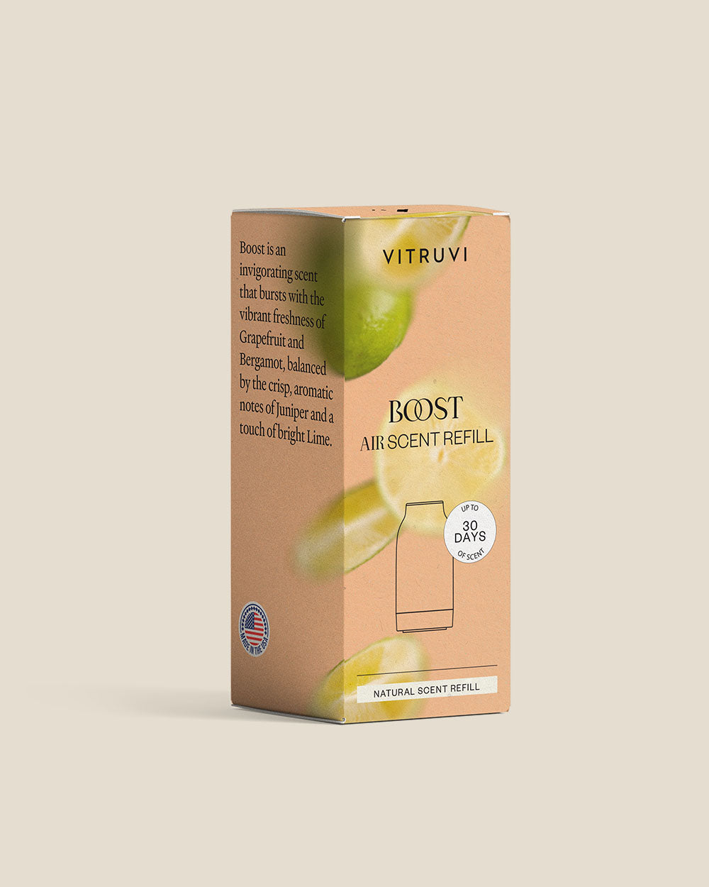 Vitruvi Air Refills make scenting your home simple, clean, and consistent. Each cartridge lasts up to 30 days, filling up to 1,500 sq. ft. with 100% natural fragrance blends. Just pop one in, sit back, and enjoy effortless, whole-home aroma.