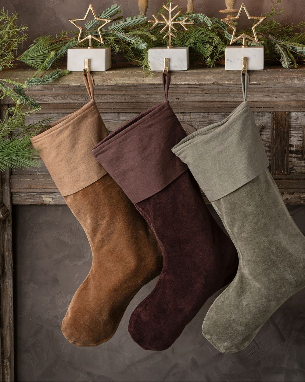 The Vera Velvet Stockings are crafted from stone-washed velvet with a coordinating cotton cuff for a luxe, cozy look. Whether hung from the mantel, bedframe, banister, or shelving, they add warmth and elegance to any festive scene and are made to last for years.