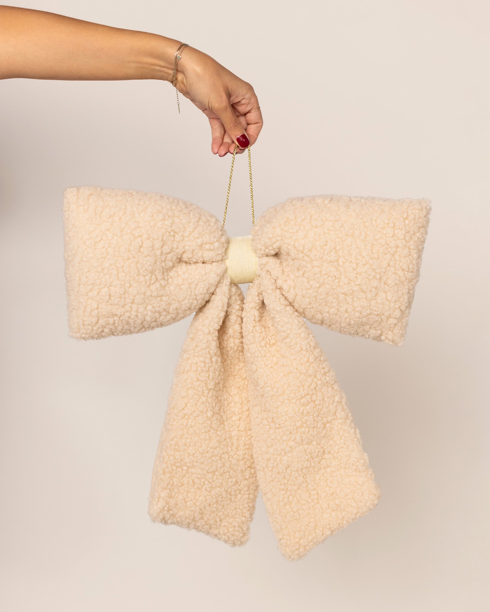 I’m obsessed with how cozy and chic these bows are! The sherpa texture adds the perfect softness to holiday decorating.
