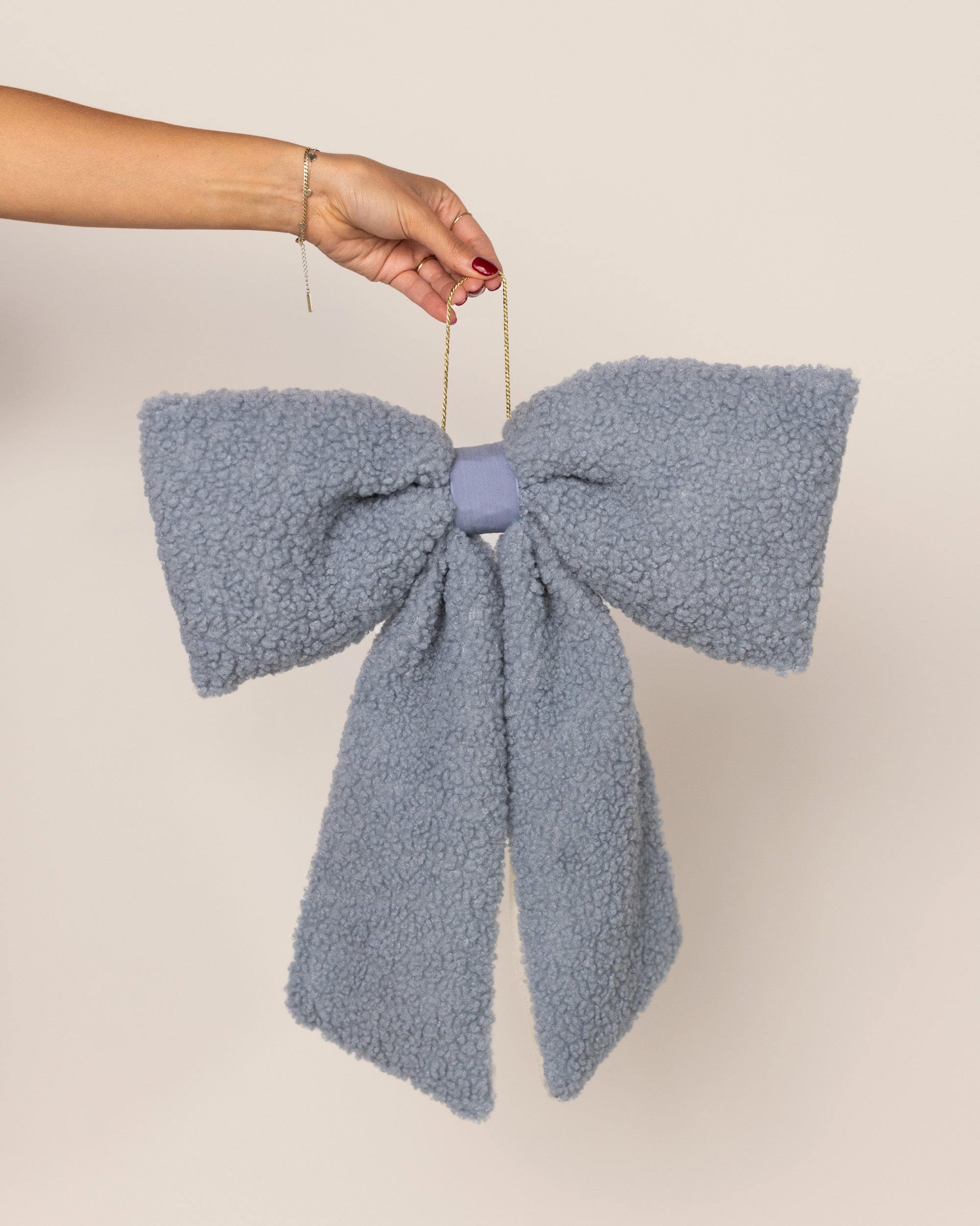 These oversized sherpa bows add instant charm and texture to your holiday decor. Made from plush poly sherpa with a built-in clip, they’re easy to style on stair rails, mantels, wreaths, or the back of chairs. Available in three warm, neutral tones, Blue, Beige, and Brun, each bow brings a soft, elevated, and festive touch to any space.