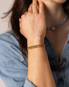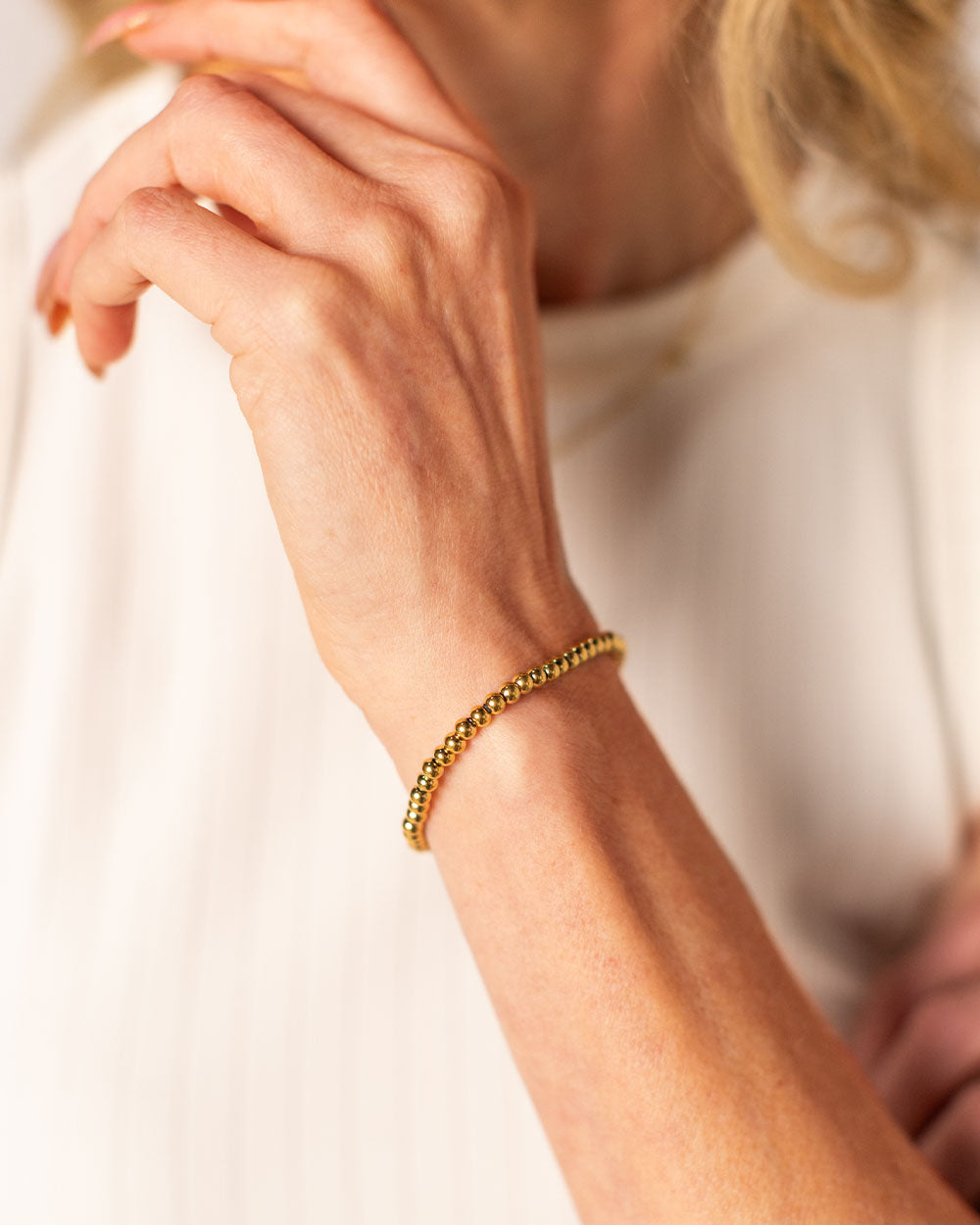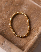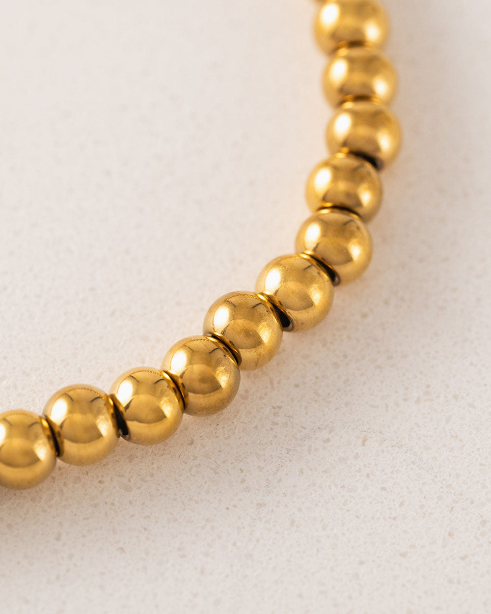 The Solstice Stretch Bracelet is defined by its smooth gold beads and timeless shape. Made with 316L stainless steel and finished in 18K gold PVD, it’s waterproof, tarnish-resistant, and hypoallergenic. The stretch design makes it easy to slip on and off. It holds its shine, layers beautifully, and adds that extra something that makes a stack feel complete.