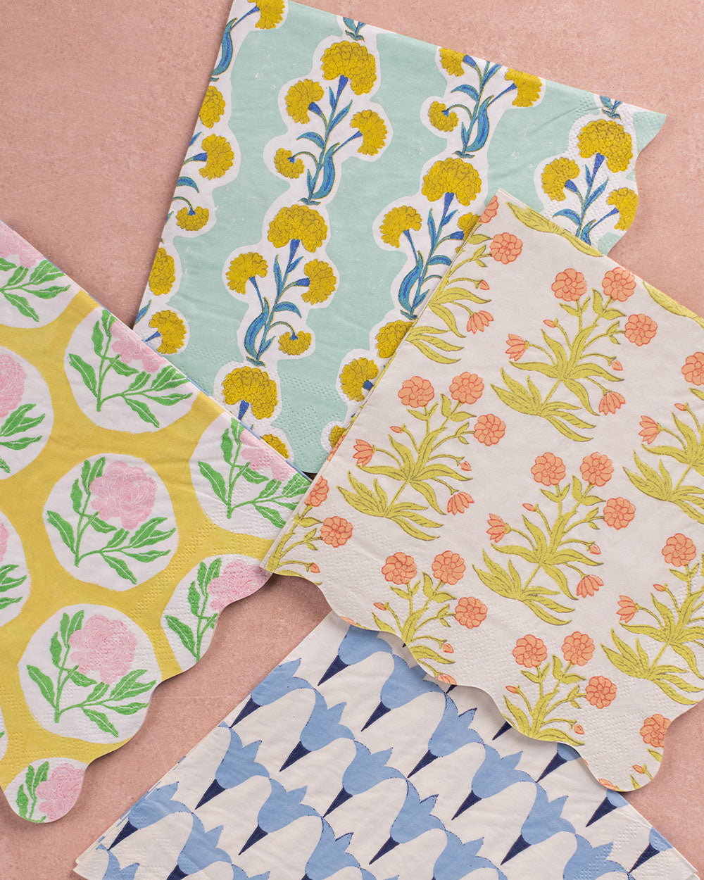 Designed in collaboration with Molly Mahon, these napkins feature her signature block-print patterns in a mix of four designs. Made from soft yet durable 3-ply paper with wavy edges, they’re as practical as they are pretty. Perfect for dinner parties, garden gatherings, or anything that calls for a more playful, print-forward setup.
