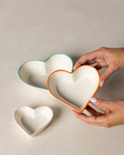 Creative Co-Op: Heart Shaped Stoneware Bowls with Coloured Rims - Set of 3