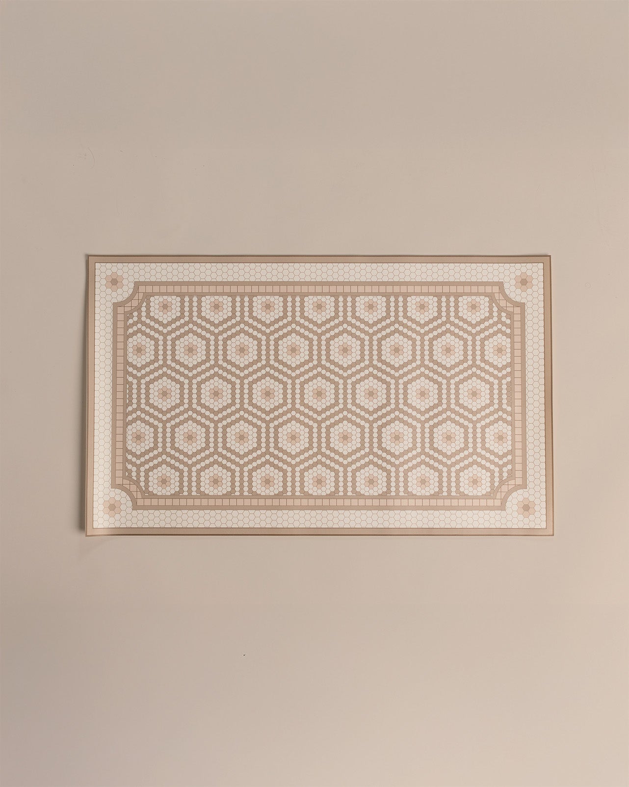 Add a touch of vintage artistry to your floor with this small, vinyl floor mat custom made for The Jilly Box by Maison Lorrain. Featuring a delicate mosaic pattern in blush and cream, this floor mat is durable and easy to clean making it perfect for an entryway or in the kitchen.