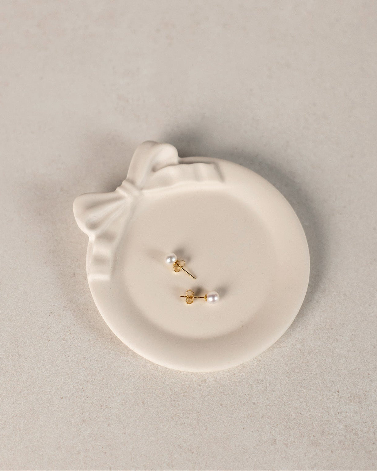 Hold your treasures in style with this charming bow trinket dish. It's perfect for storing jewelry and other tiny items you want to keep close and in sight. A sweet addition to any space.