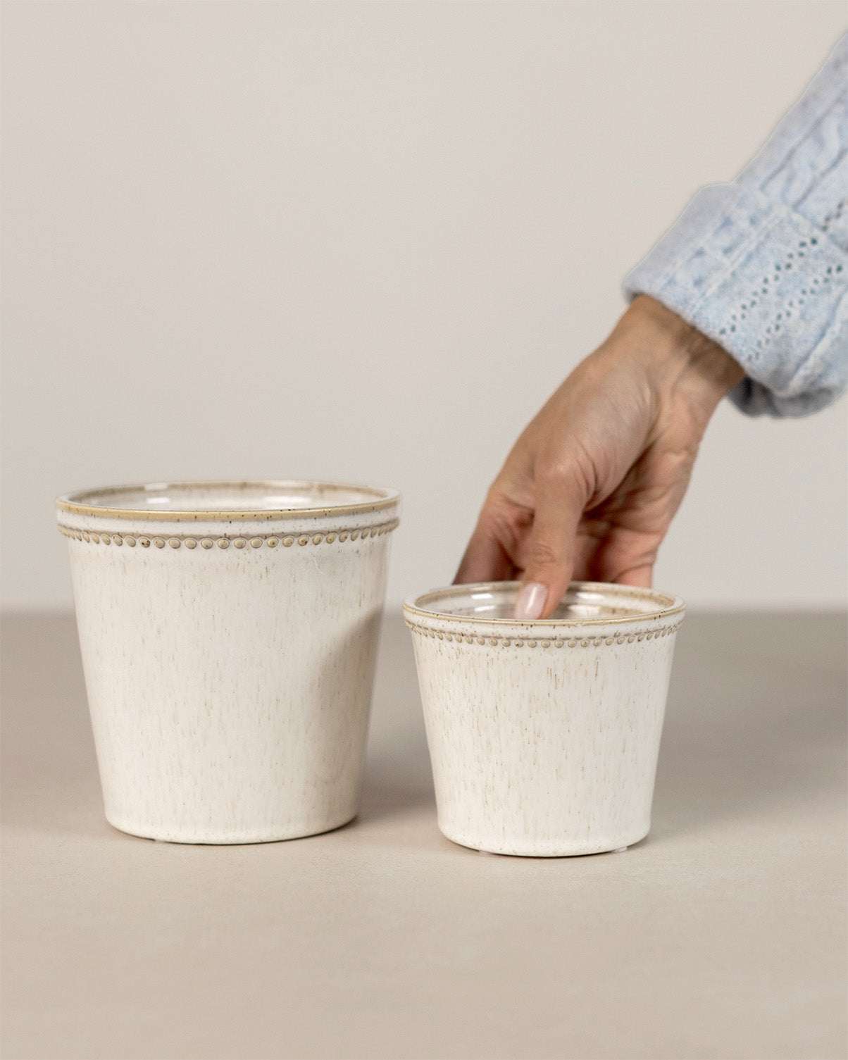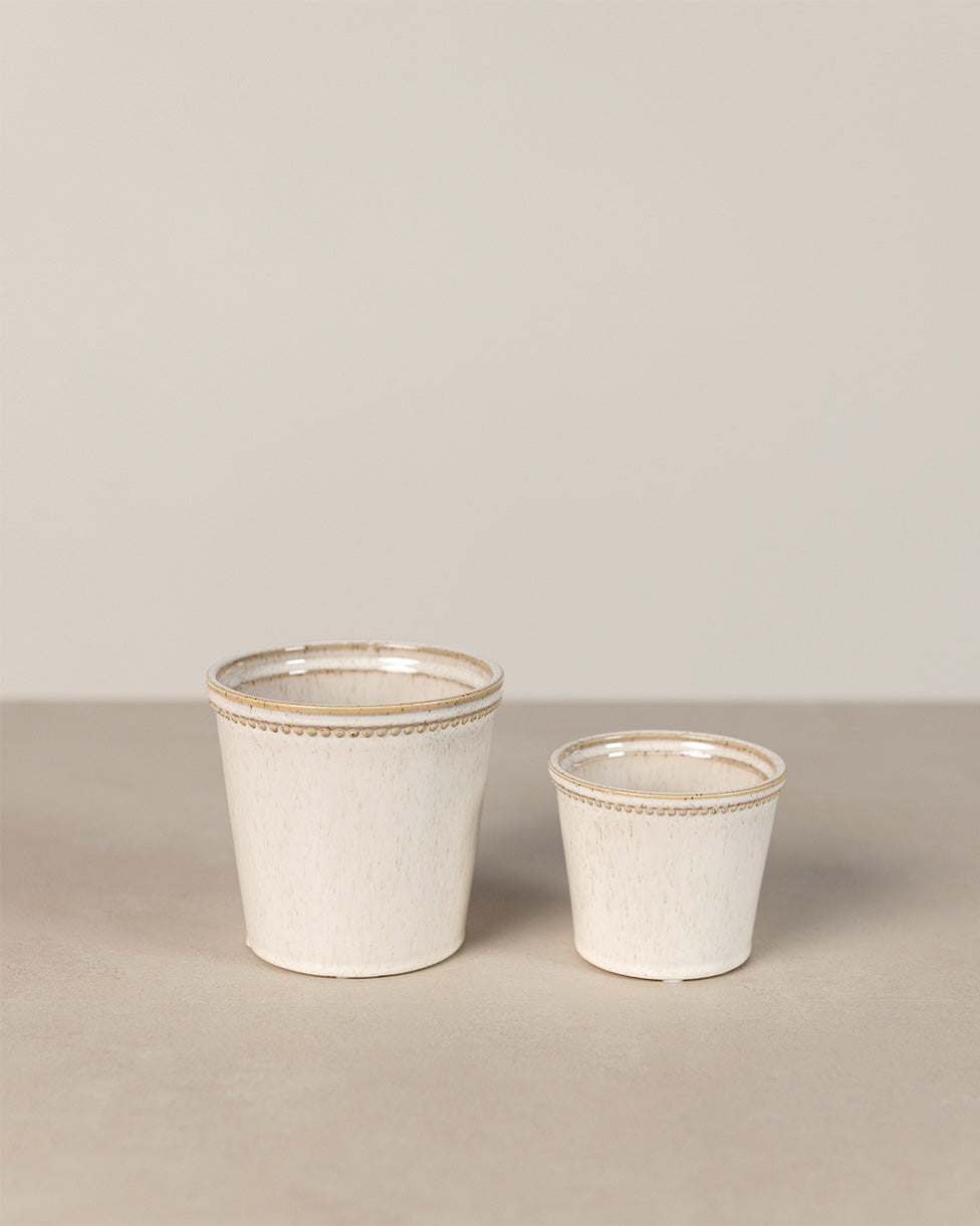 Designed with a soft wavy edge for a sculptural, organic look, these lightweight yet visually striking planters bring texture and movement to shelves, windowsills, and tabletops. Available in two complementary sizes, they're perfect for layering heights or styling together for a collected feel. Finished in a natural, neutral tone, each planter features subtle variations that make every piece beautifully unique.