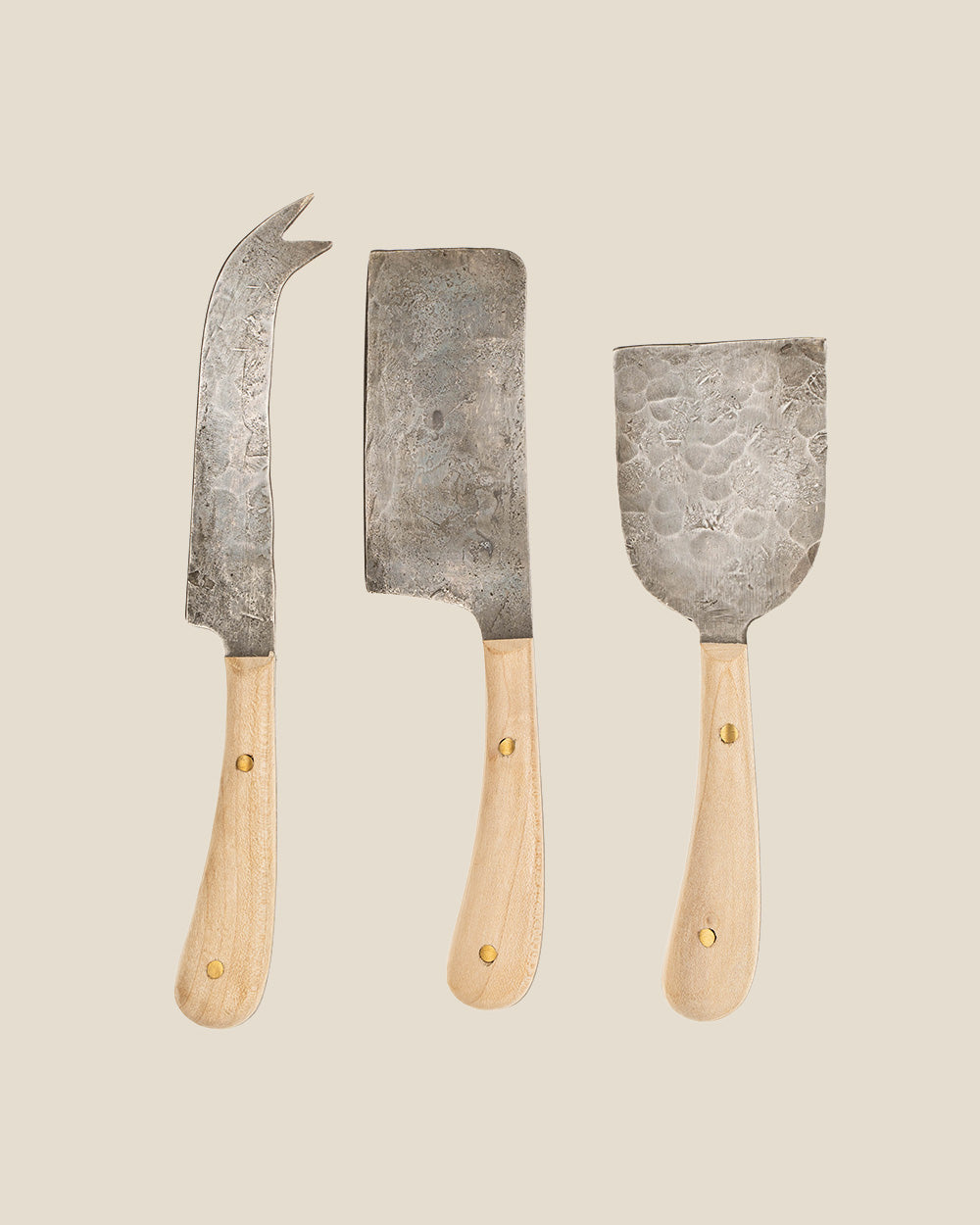 Made using traditional forging techniques, these hand forged cheese knives feature a beautifully weighted feel and subtly unique variations that make every piece one of a kind. Perfect for soft, hard, and semi-firm cheeses, this set brings both function and refined craftsmanship to your charcuterie boards.