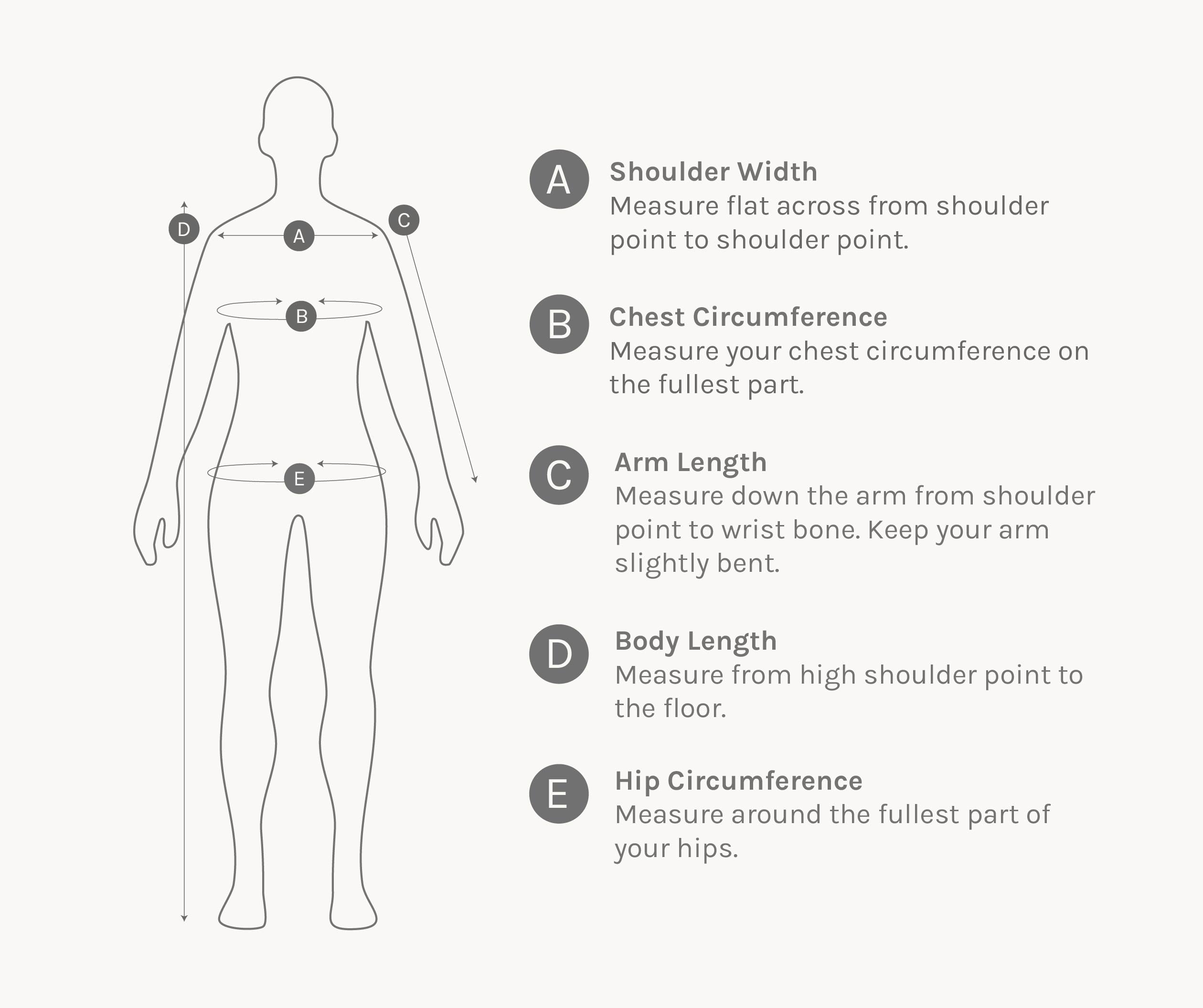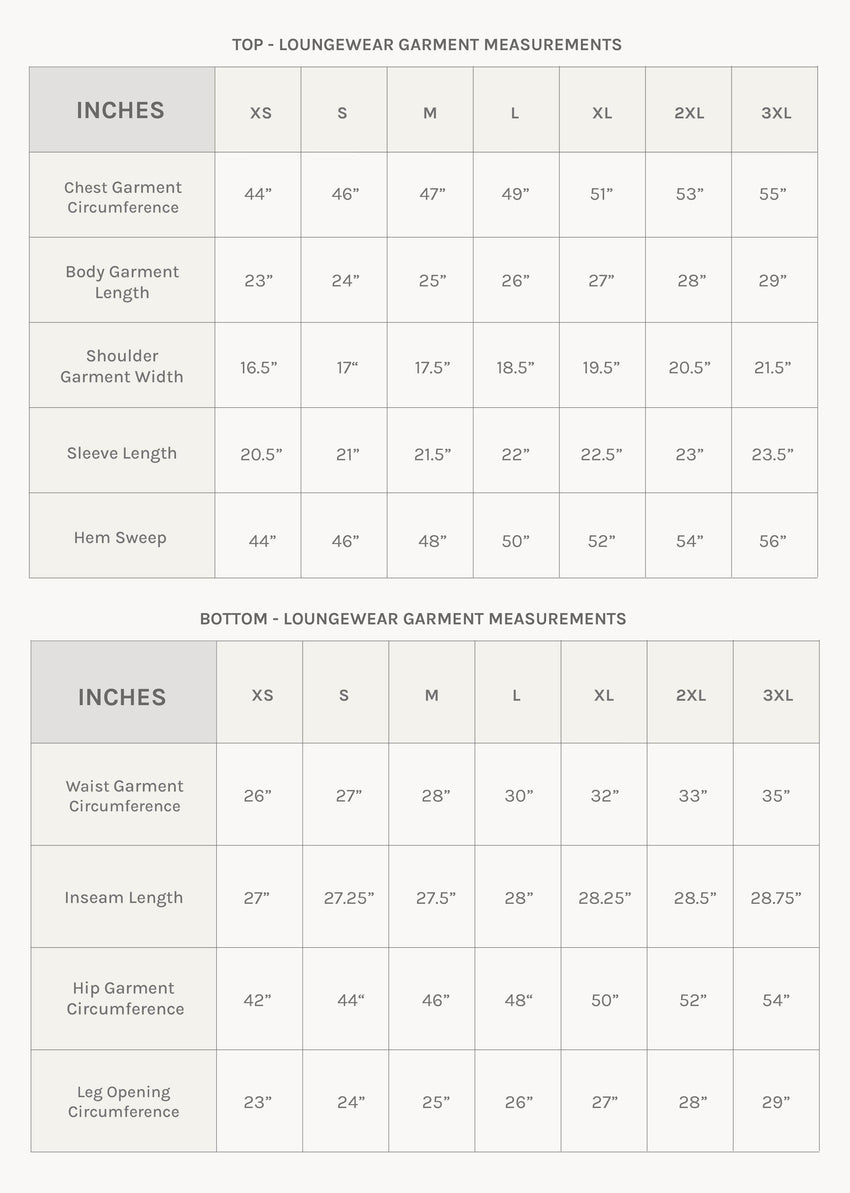 Please note: All measurements listed are of the garment itself, not body measurements. For the most accurate fit, we recommend comparing the garment measurements to your own body measurements.