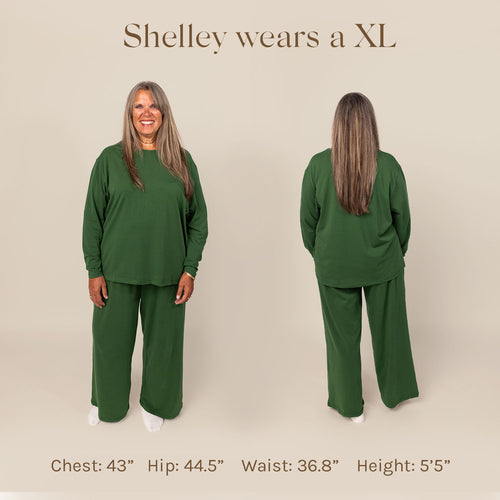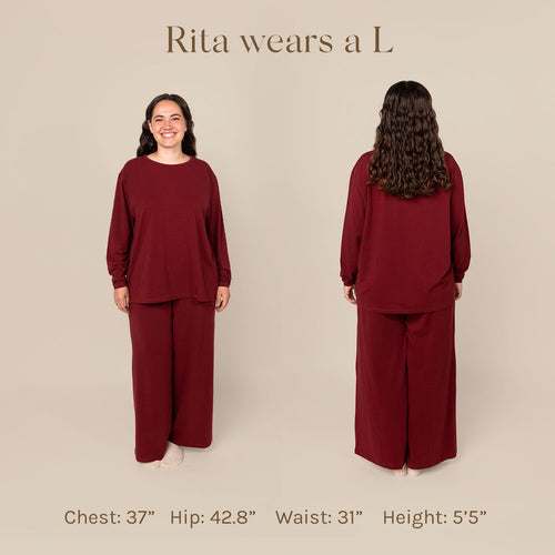 HOW IT FITS: This lounge set features an intentionally oversized, relaxed fit with a forgiving, super-stretchy waistband and roomy pockets. The lightweight fabric drapes comfortably without clinging, making it ideal for lounging or everyday errands.