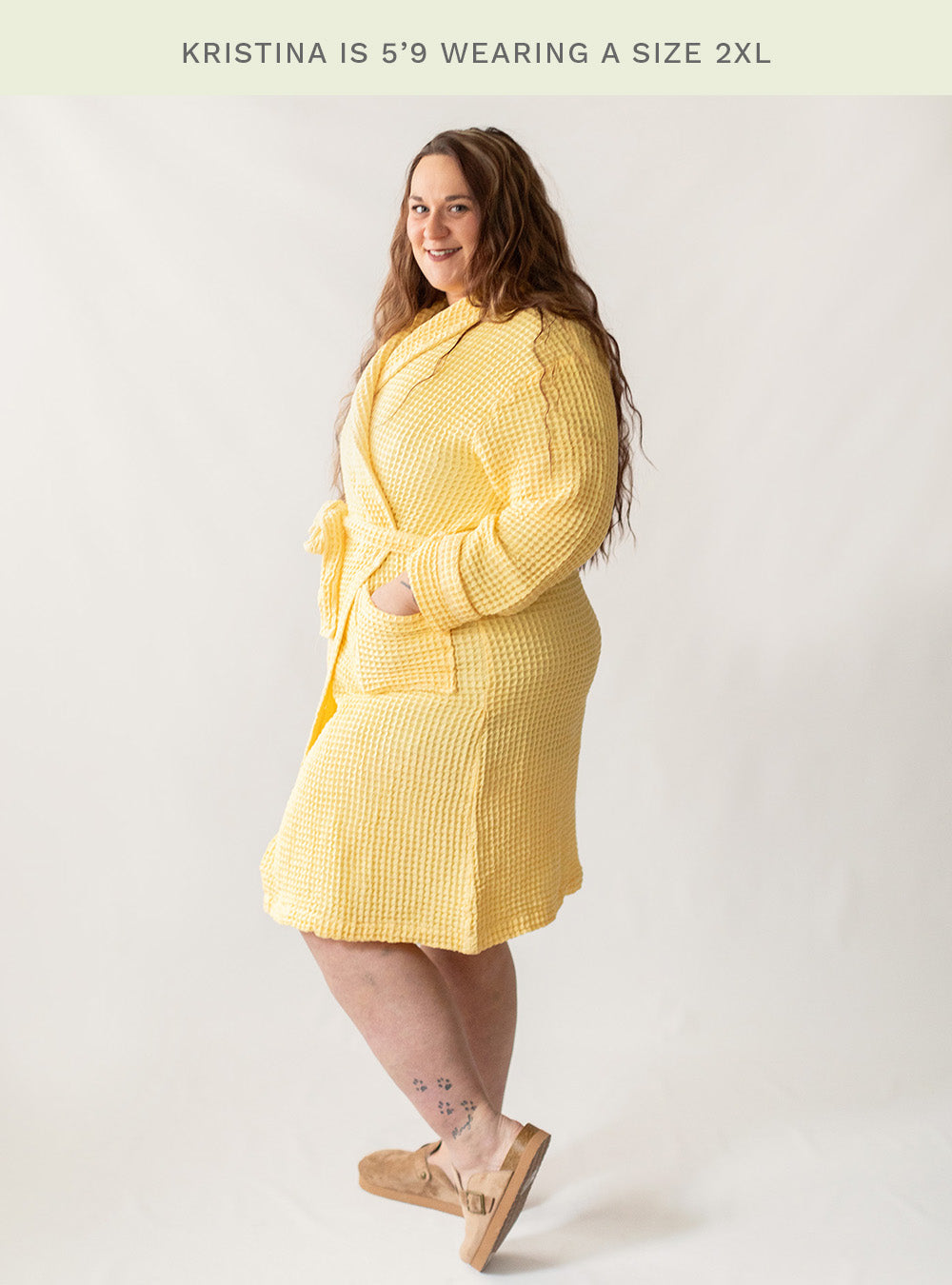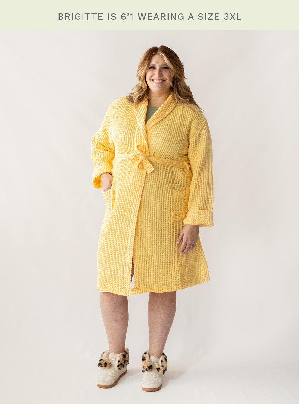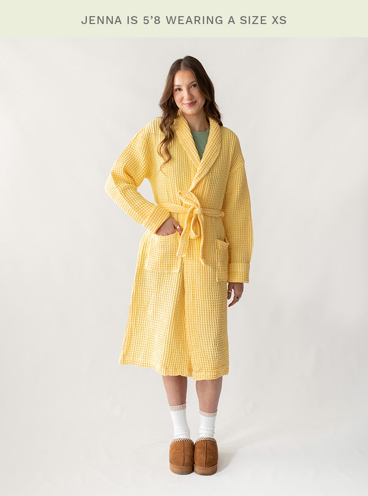The Waffle Robe comes in sizes XS to 3XL (Jillian is wearing a size XS!). Make sure to check out the sizing chart below, as well as the model photos, to find the perfect fit for you.