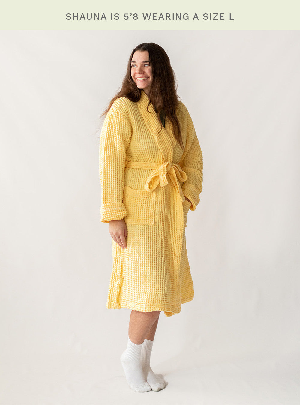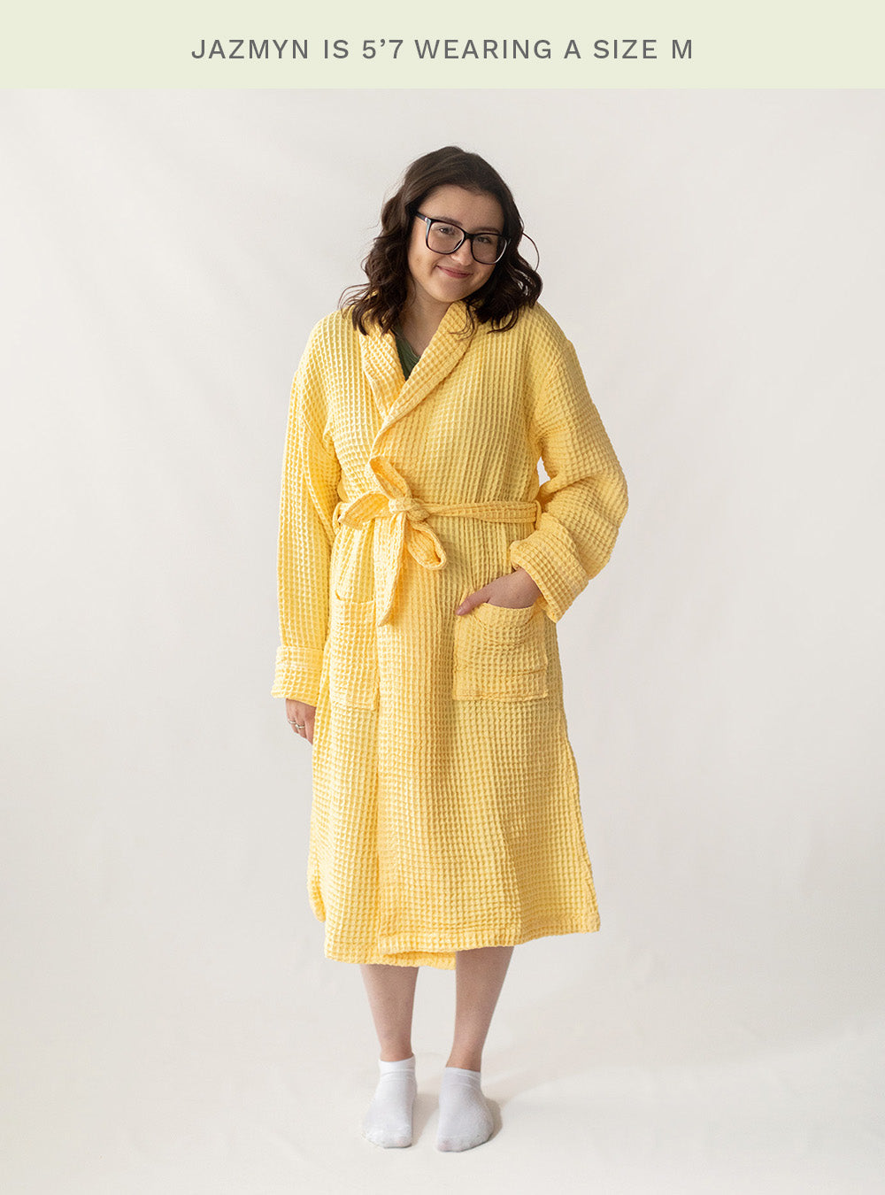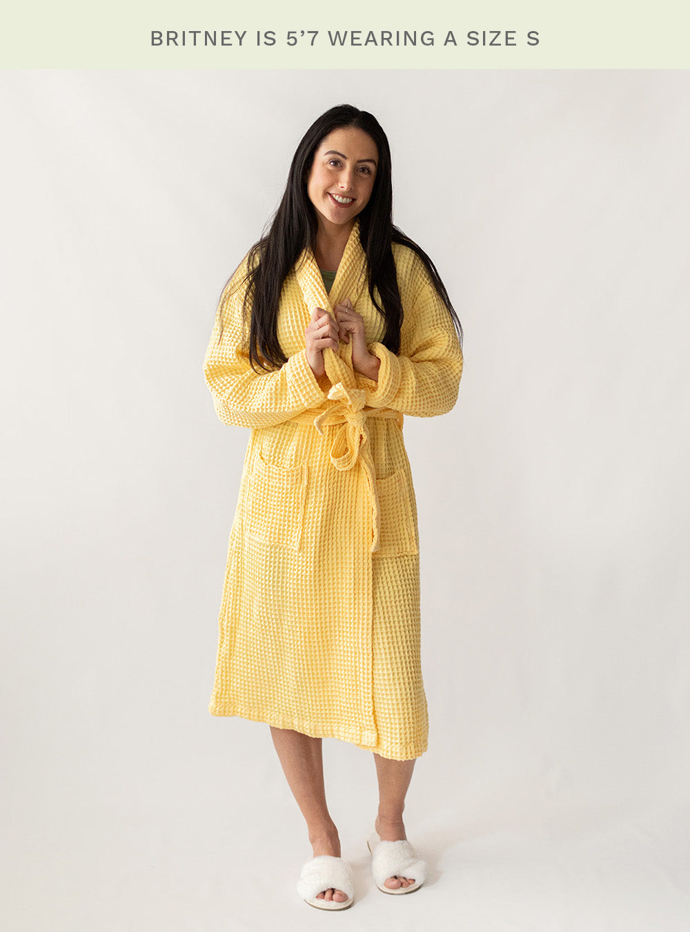 The Waffle Robe comes in sizes XS to 3XL (Jillian is wearing a size XS!). Make sure to check out the sizing chart below, as well as the model photos, to find the perfect fit for you.