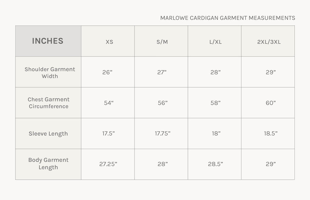 This cardigan features a relaxed oversized fit, designed to flatter all body types without feeling bulky. It falls beautifully on the body and hits just below the hip for that timeless, easy-to-style length. The fabric has a cozy hand-feel with just the right amount of stretch, so it’s both breathable and layer-friendly. Jilly is wearing the XS in the photos, offering a relaxed, true-to-size fit. We’ve included sizes XS to 3XL.