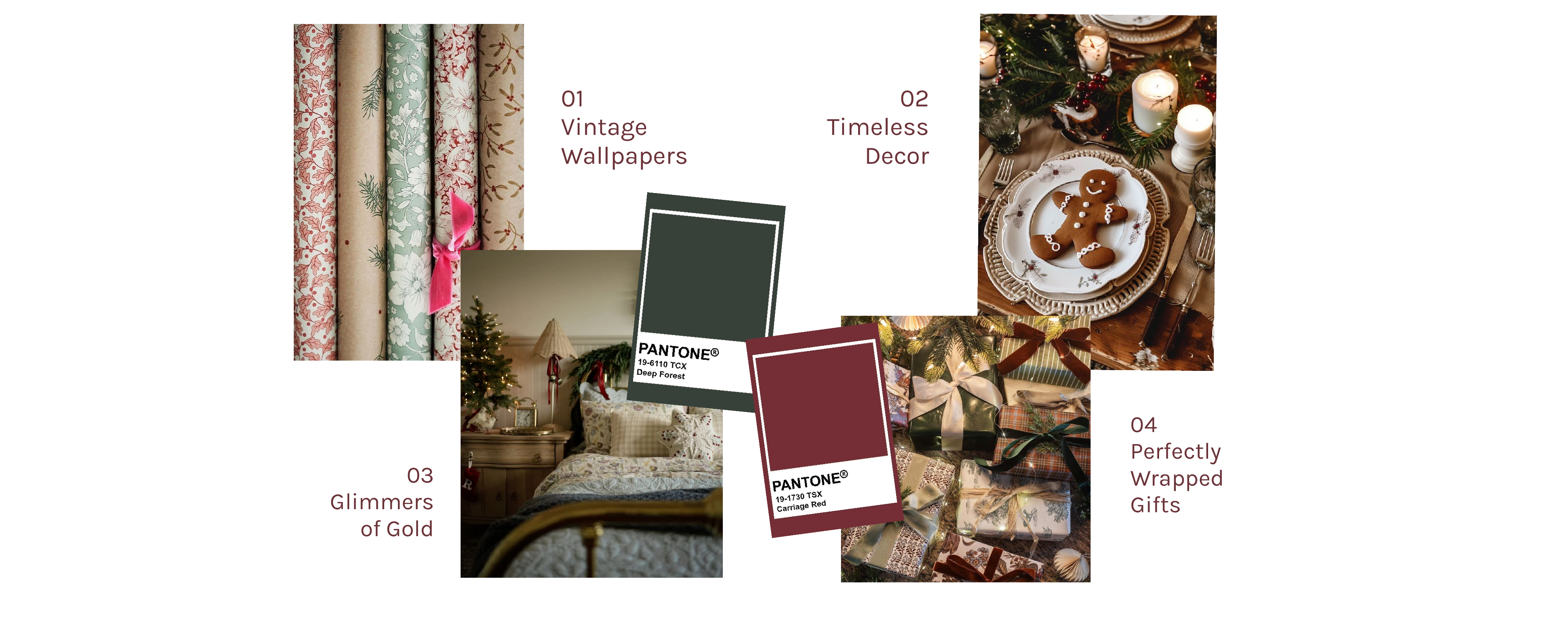 At its heart, this mood board is about recreating that feeling of wonder from when you were a child, when three presents under the tree felt like hundreds, and the holidays shimmered with laughter, family, and joy.