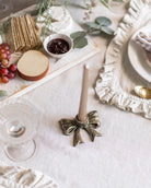 This elegant bow-shaped candle holder adds a nostalgic, festive touch to any table or mantel. Crafted from durable cast iron and sized perfectly, it brings warmth and charm to your holiday décor.