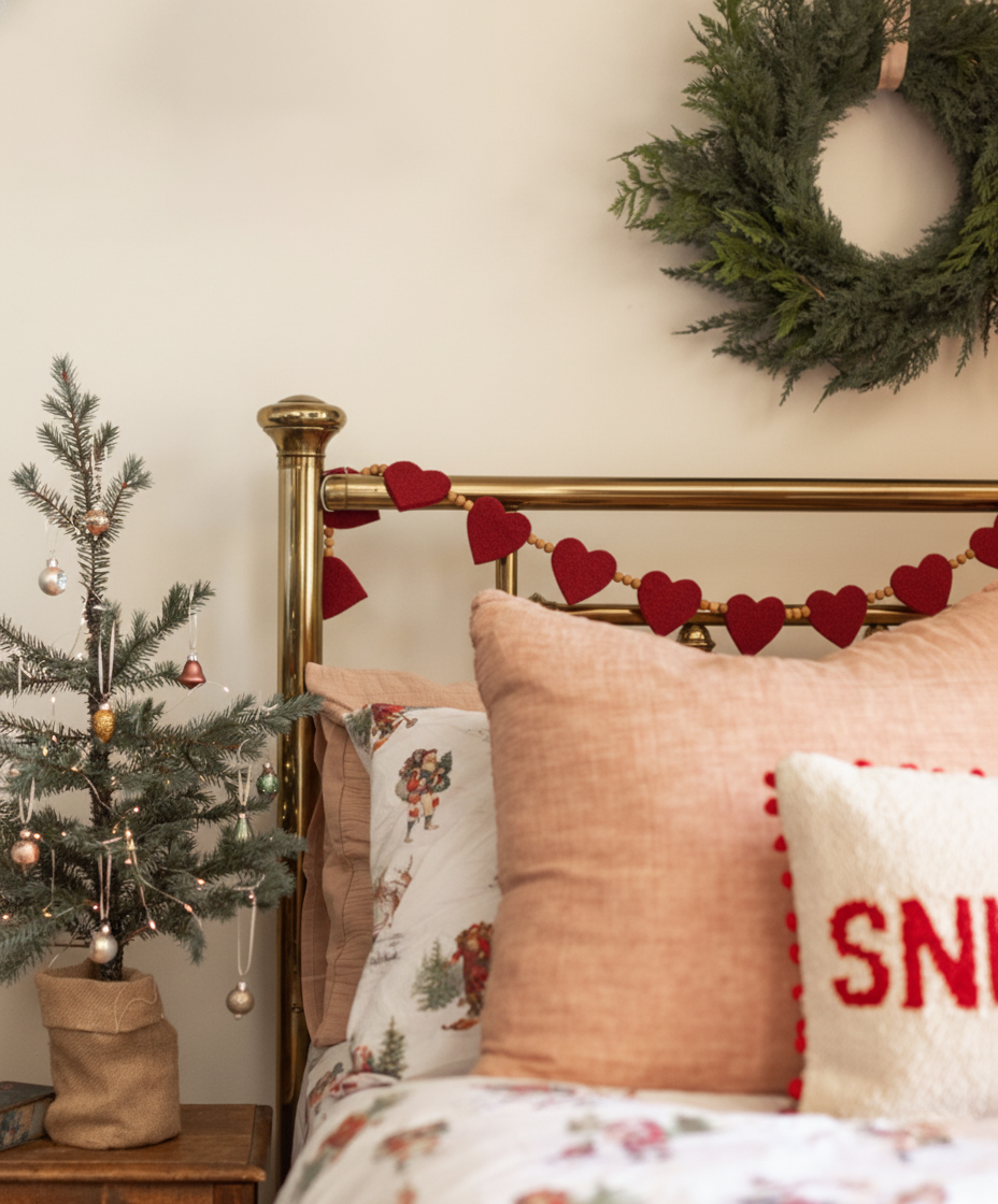 I love using soft garlands to bring warmth into a space without overwhelming it. This one is so easy to layer with greenery, lights, or stockings and looks adorable just about anywhere in the house all year round!