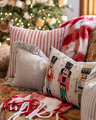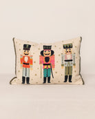This vibrant lumbar pillow features colourful printed nutcrackers, playful beads, and eyelash fringe for a touch of holiday whimsy. Soft, durable, and perfectly sized to add cheer to any sofa or armchair.