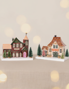 These illuminated paper houses, complete with snowy bottle brush trees, glow softly with built-in LED lights. This set of two in two charming styles, they bring instant nostalgia and warmth to mantels, shelves, or tabletops.