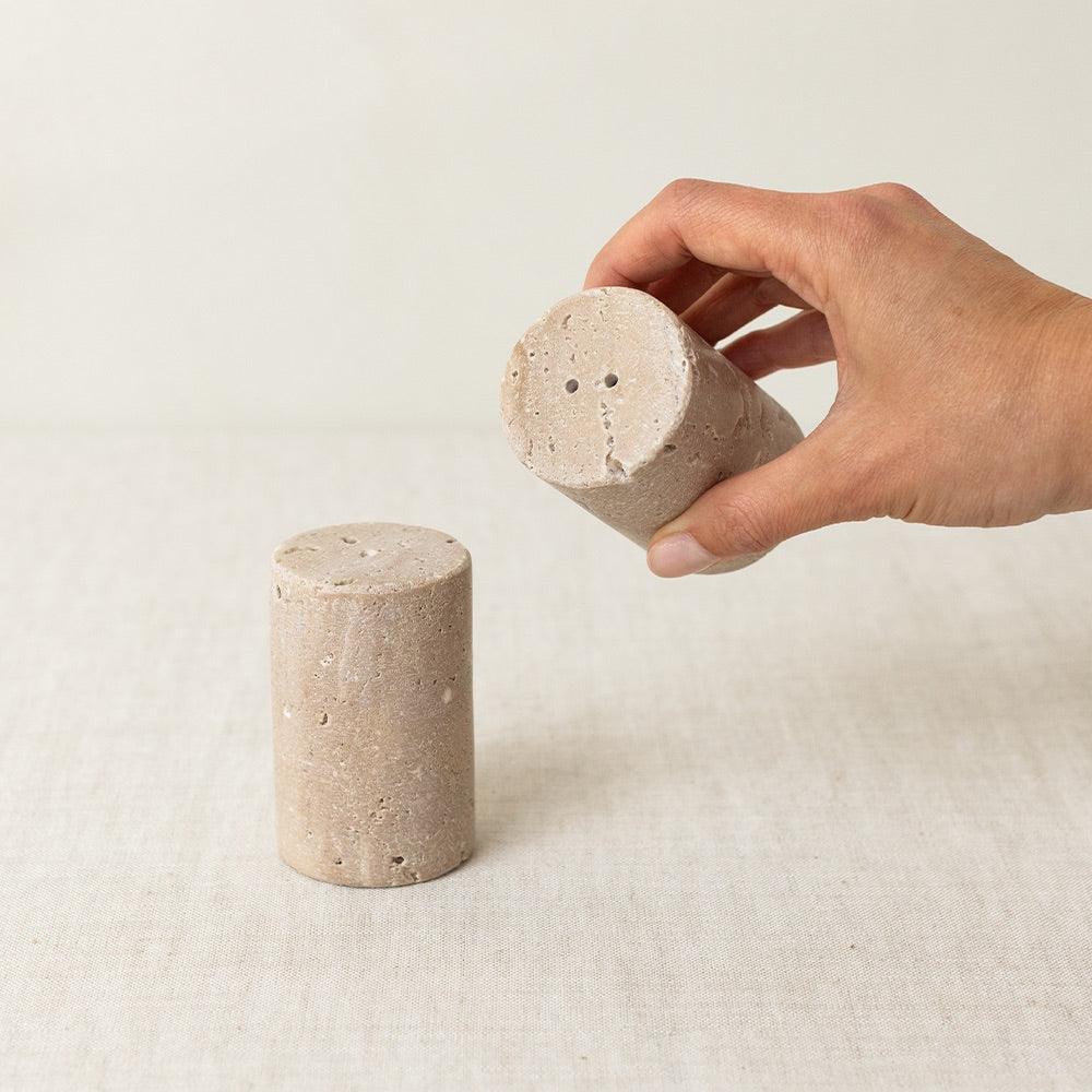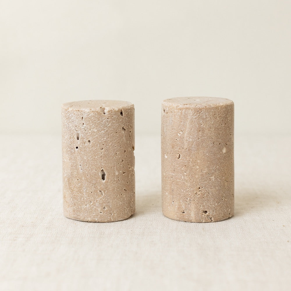 Bring elegance to your dining table with this beautifully crafted pair of travertine salt and pepper shakers from Creative Co-Op. Made from high-quality natural stone, each shaker features a smooth, glossy finish that subtly reflects the light, adding a warm touch to your table setting. With their neutral natural tone and minimalist design, these shakers blend effortlessly into any decor style, whether your space is farmhouse chic, coastal calm, or modern and minimalist. They’re as practical as they are pretty, with easy-to-use holes on top for seasoning and simple refilling.