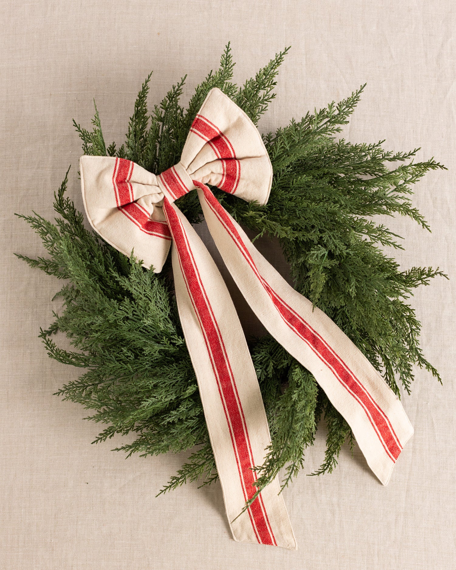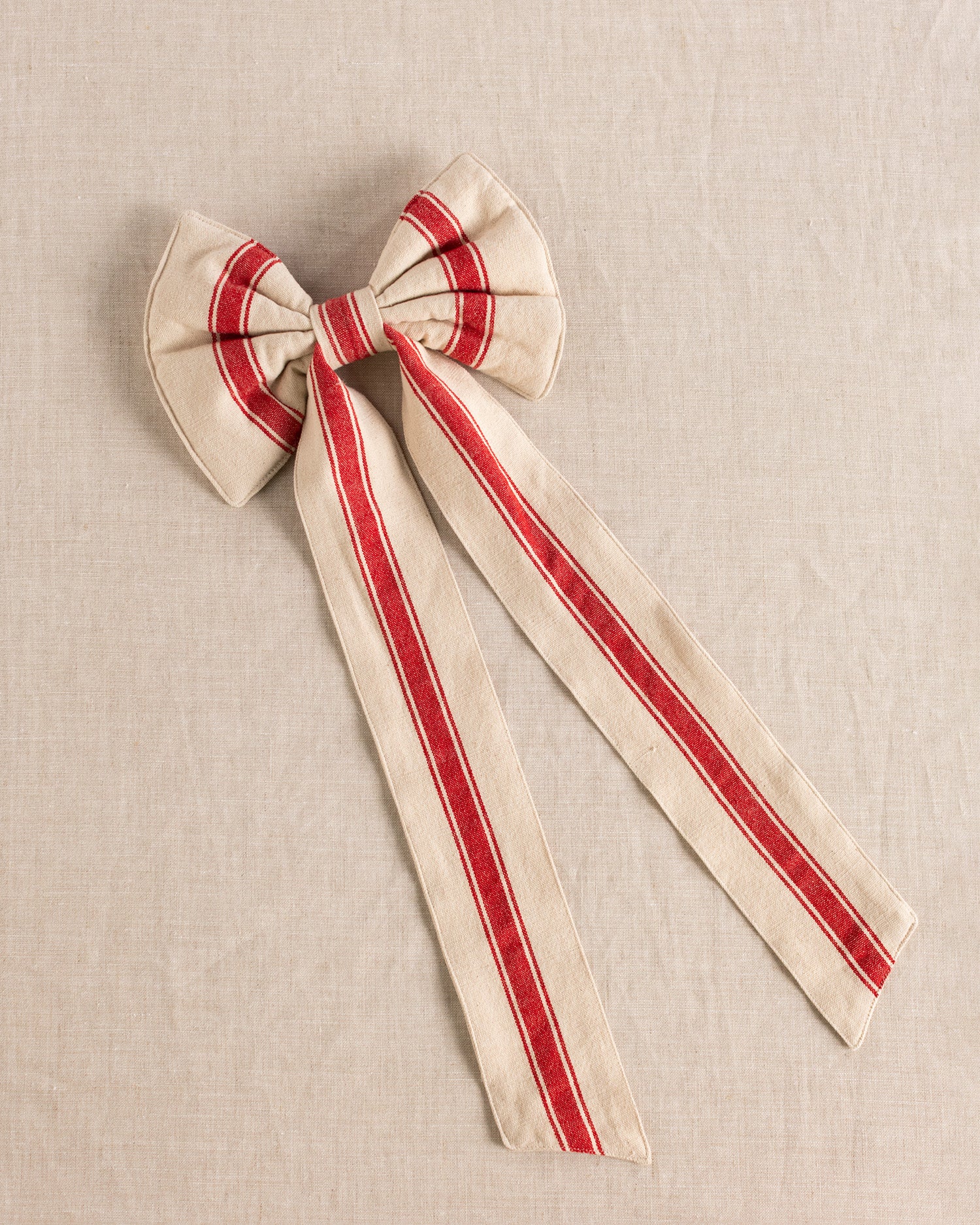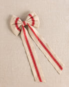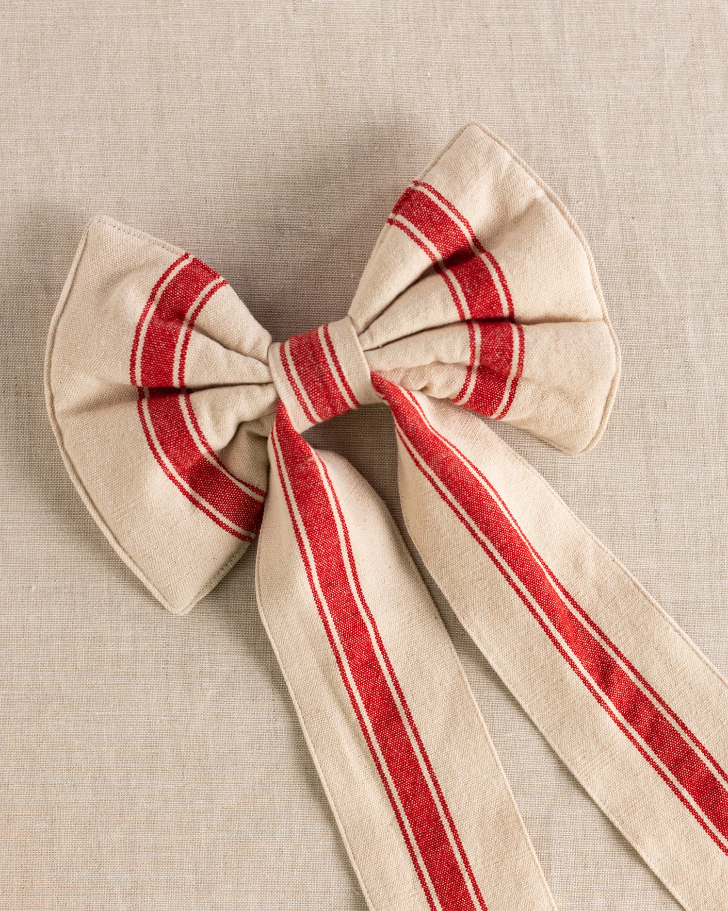 This oversized striped cotton bow features a sturdy metal clip, making it easy to attach to wreaths, garlands, stockings, or gifts. With classic red and natural stripes, it instantly adds charm and holiday spirit anywhere you place it.