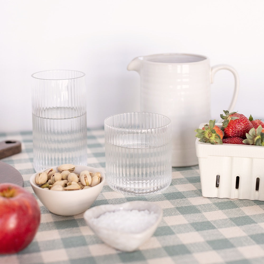 This beautiful tumbler is the perfect way to elevate and freshen up your glassware! Drink in the delicate ridges and crystal clear tones of this modern glassware collection. With 12oz’s available for your favourite drink, you will stay hydrated all day! This comes as a pack of 4.