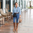 This soft vegan leather woven pattern is chic, sophisticated and perfect for dressing up or down no matter your style! It comes in two different colours, saddle brown and black, with one matching adjustable shoulder strap, which you can also remove to use it as a clutch. This bag really does it all! Gray Haus was founded by two Canadian moms and is a two women run operation creating bags for all bodies!