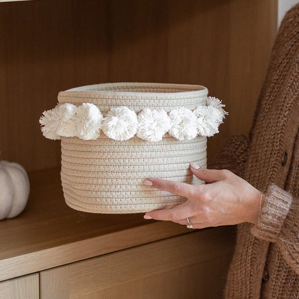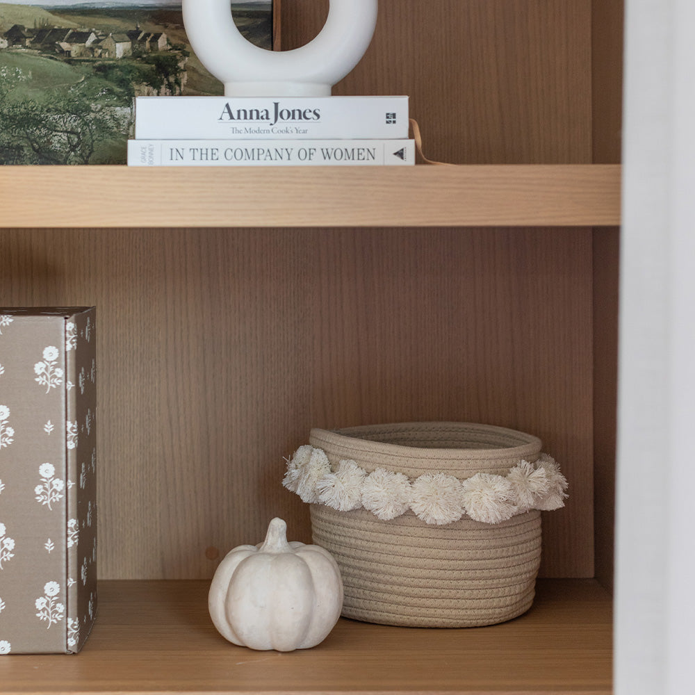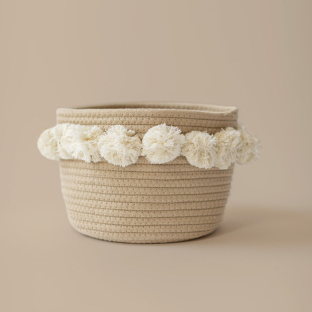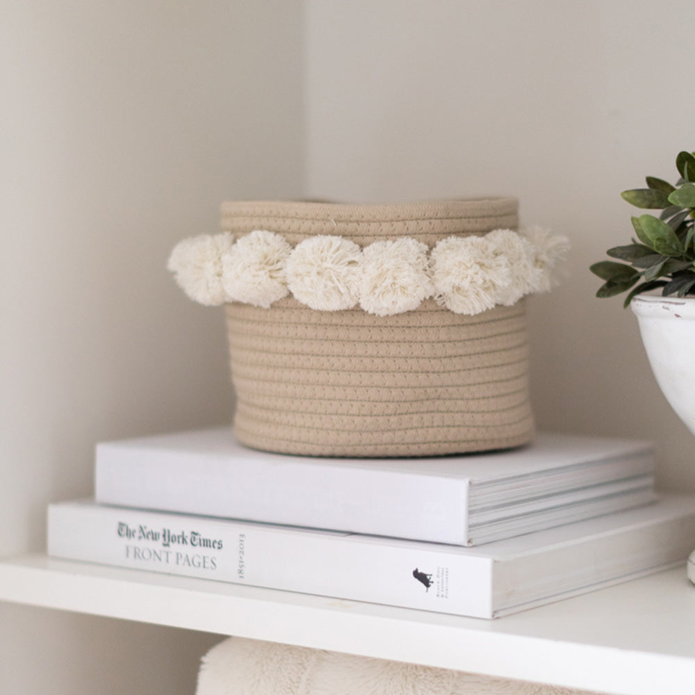 Twig and Tassel: Taupe Pom Basket - Small